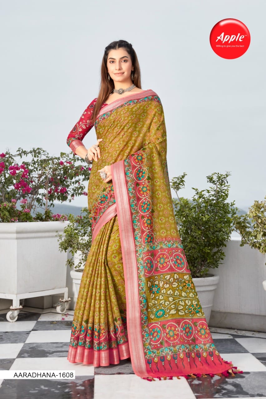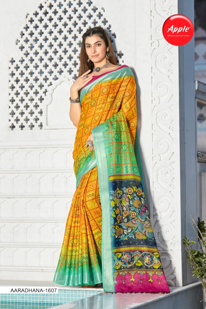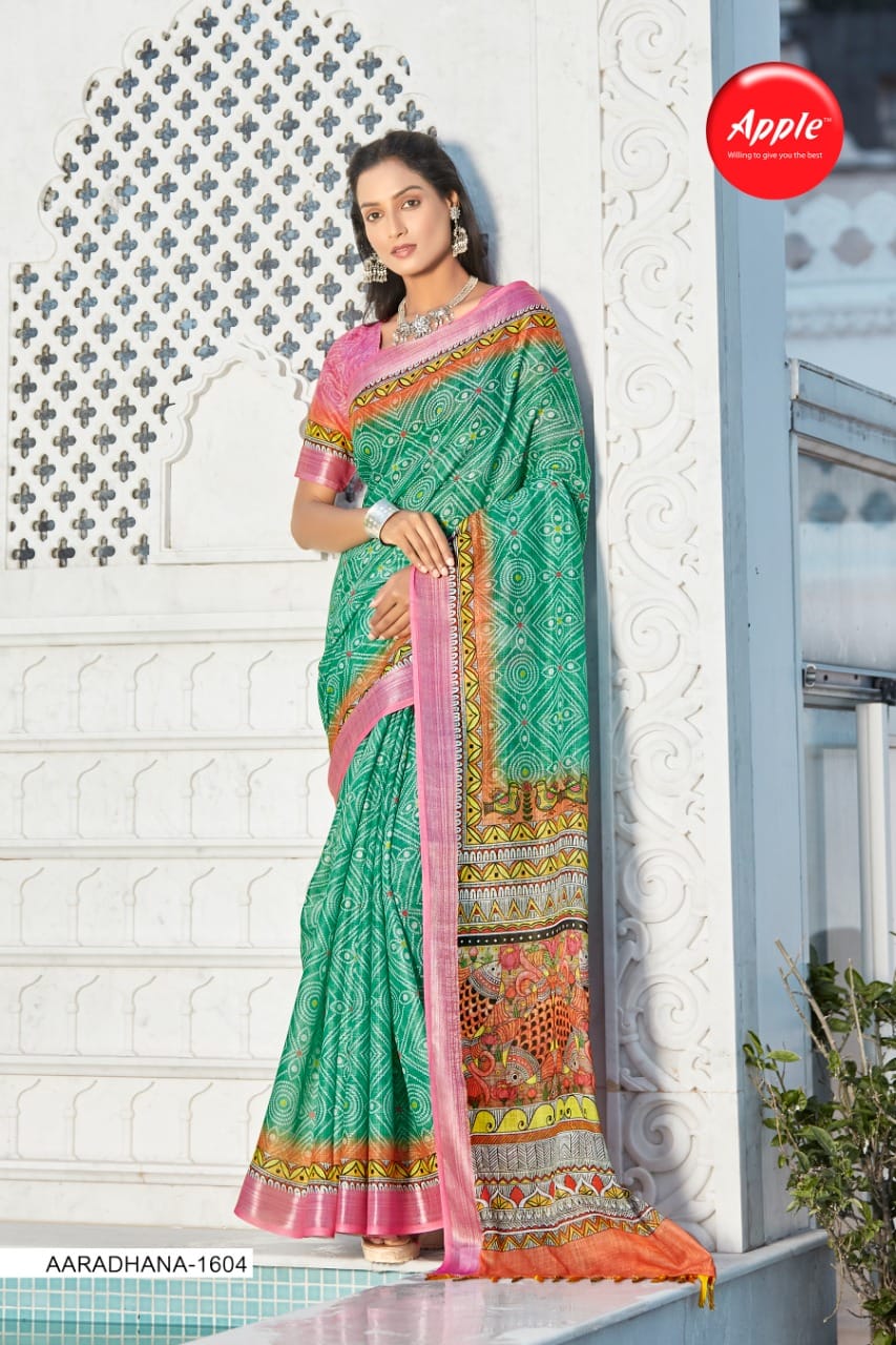 Apple Presents Aradhna Vol-16 1601 - 1608 Series Pure Linen With Fancy Digital Print Event Wear Saree Collection