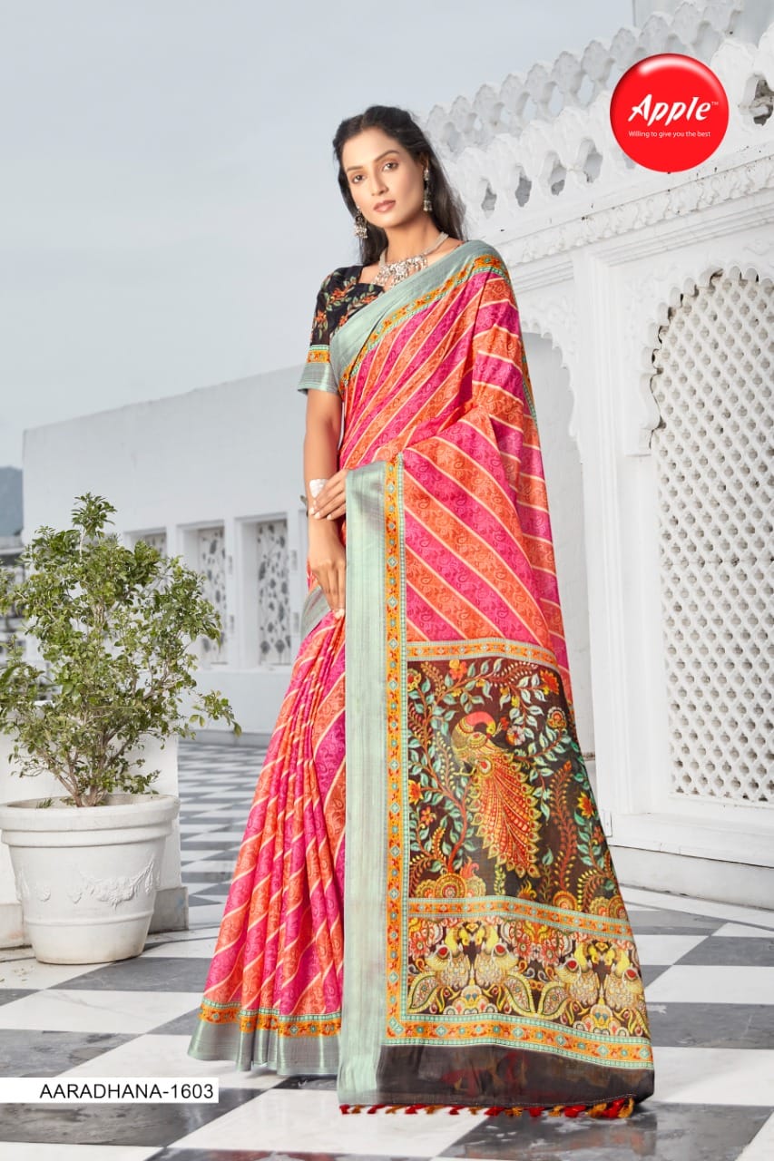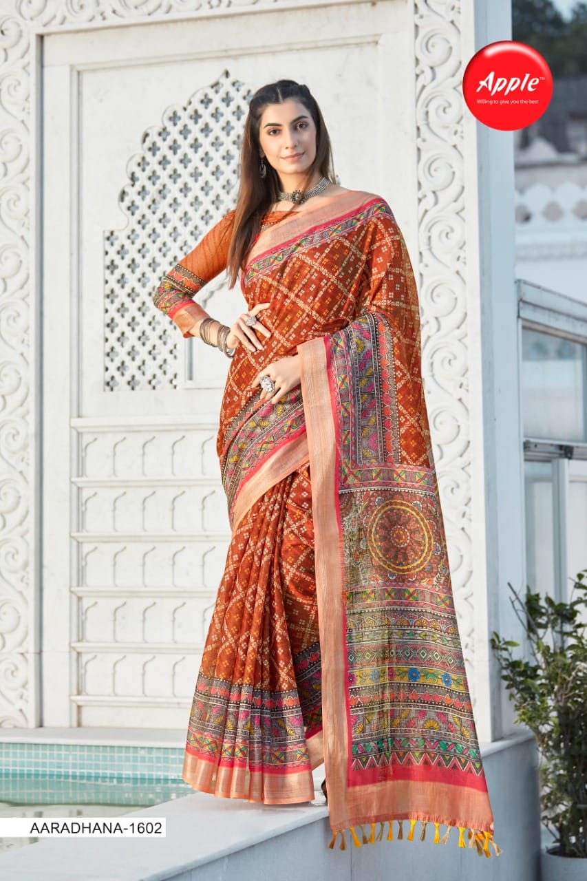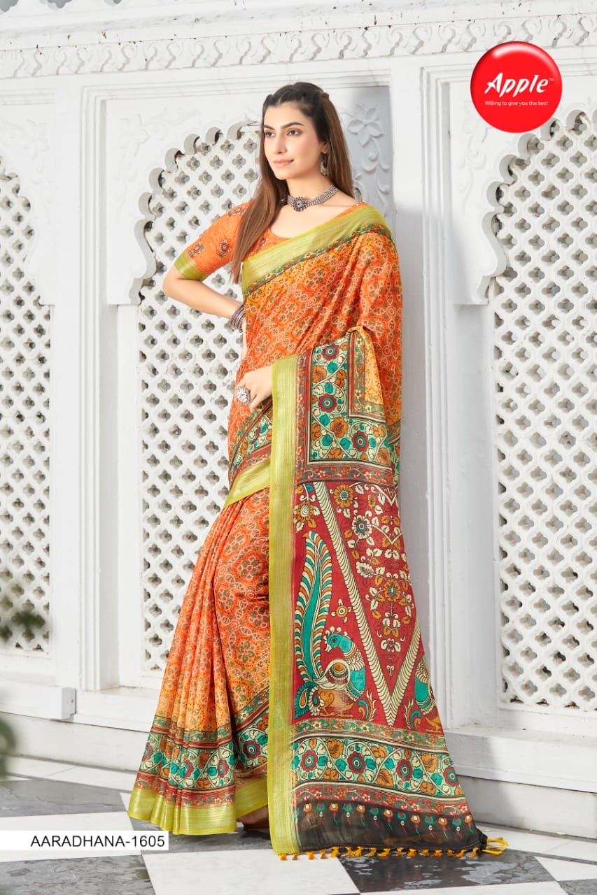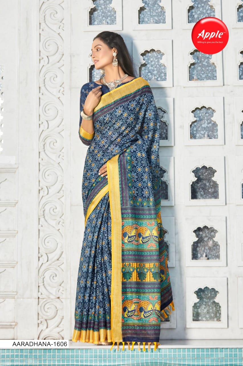 Apple Presents Aradhna Vol-16 1601 - 1608 Series Pure Linen With Fancy Digital Print Event Wear Saree Collection