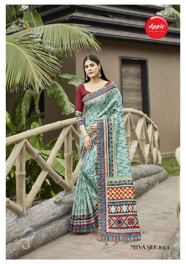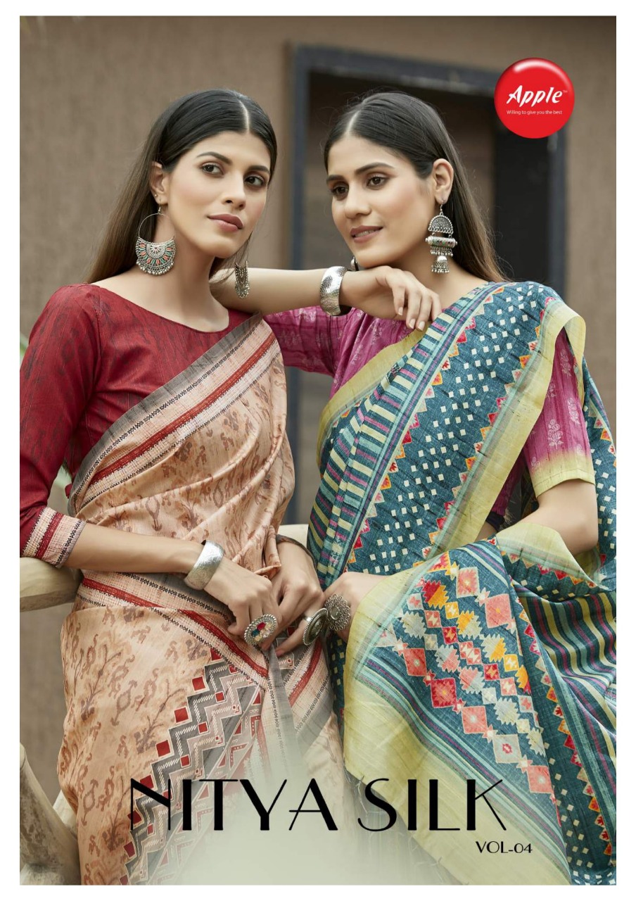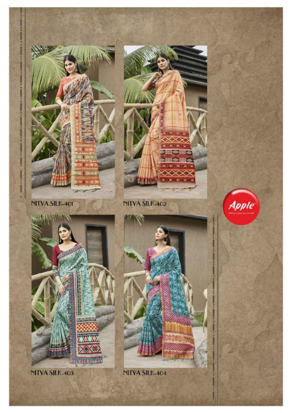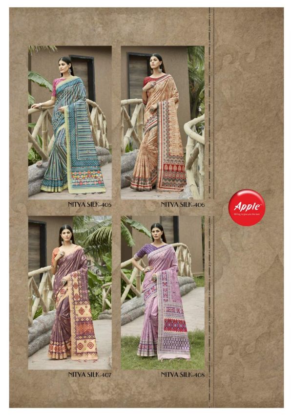 Apple Presents Nitya Silk Vol-4 401-408 Series Bhagalpuri Digital Print Saree Collection
