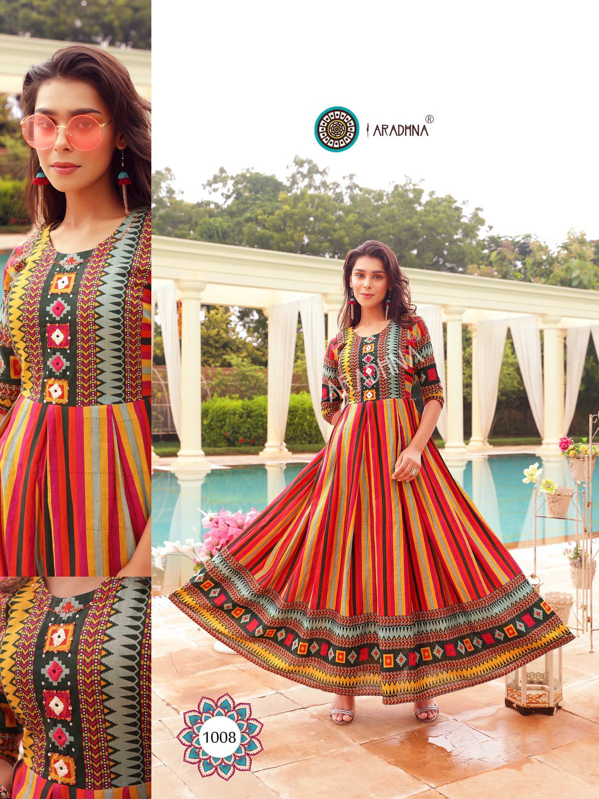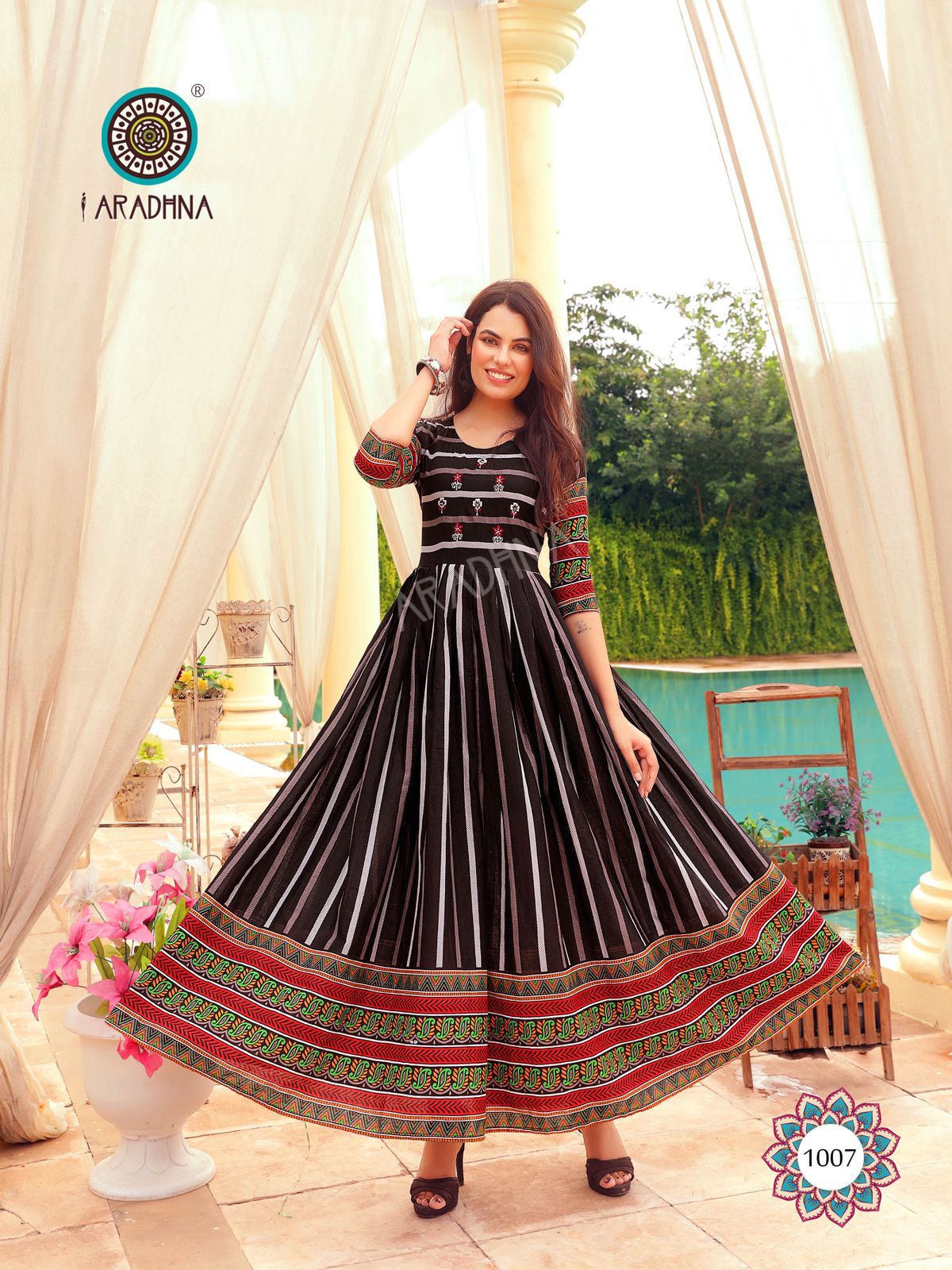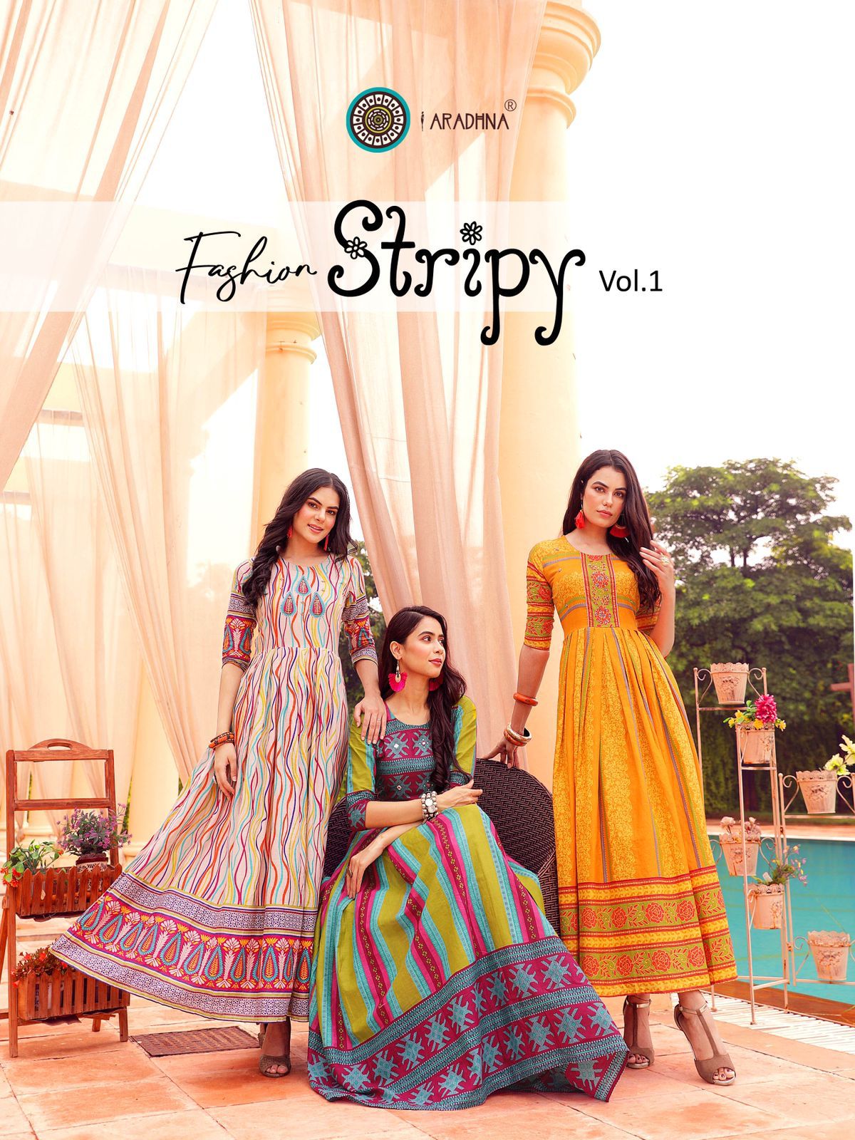 Aradhana Presents Fashion Stripy Vol-1 1001 - 1012 Series Heavy Cotton Striped Pattern With Decent Work Fancy Party Wear Gown Collection