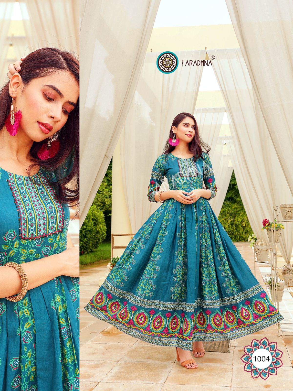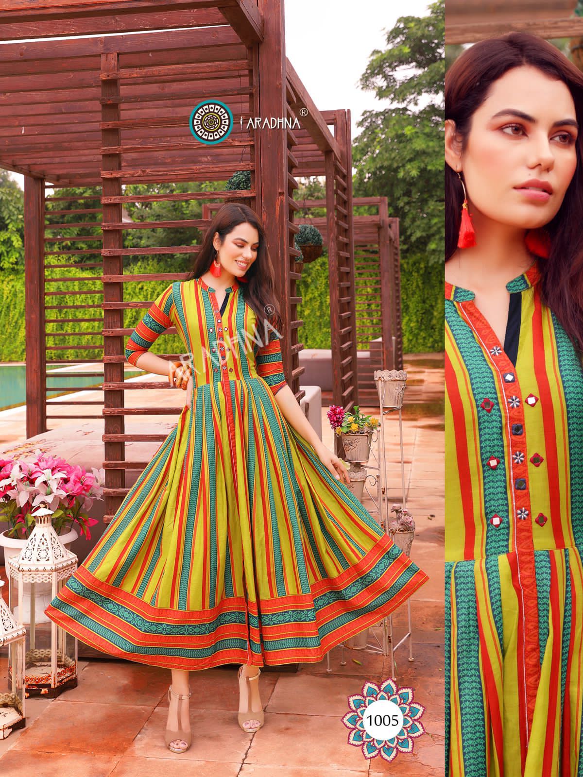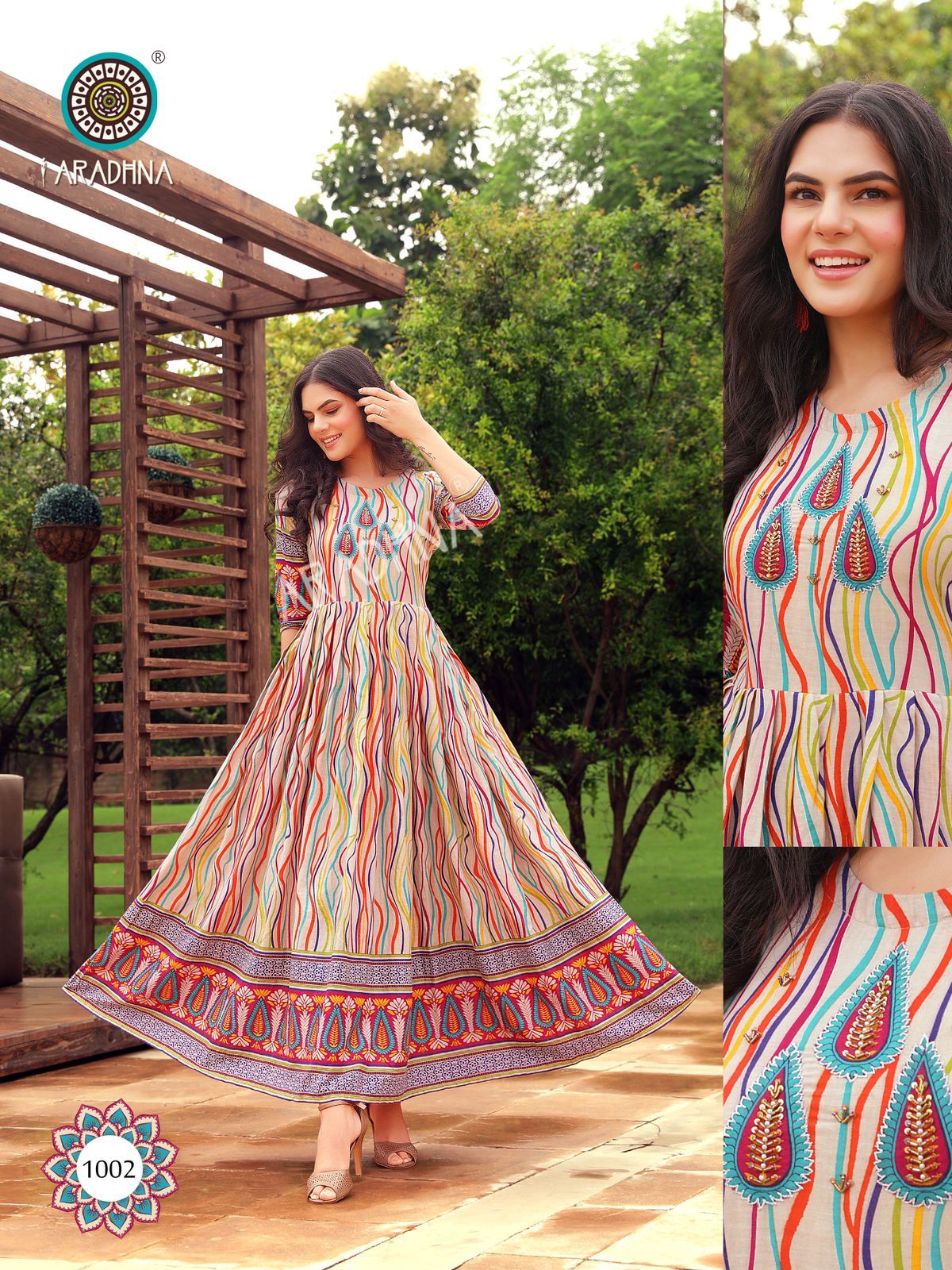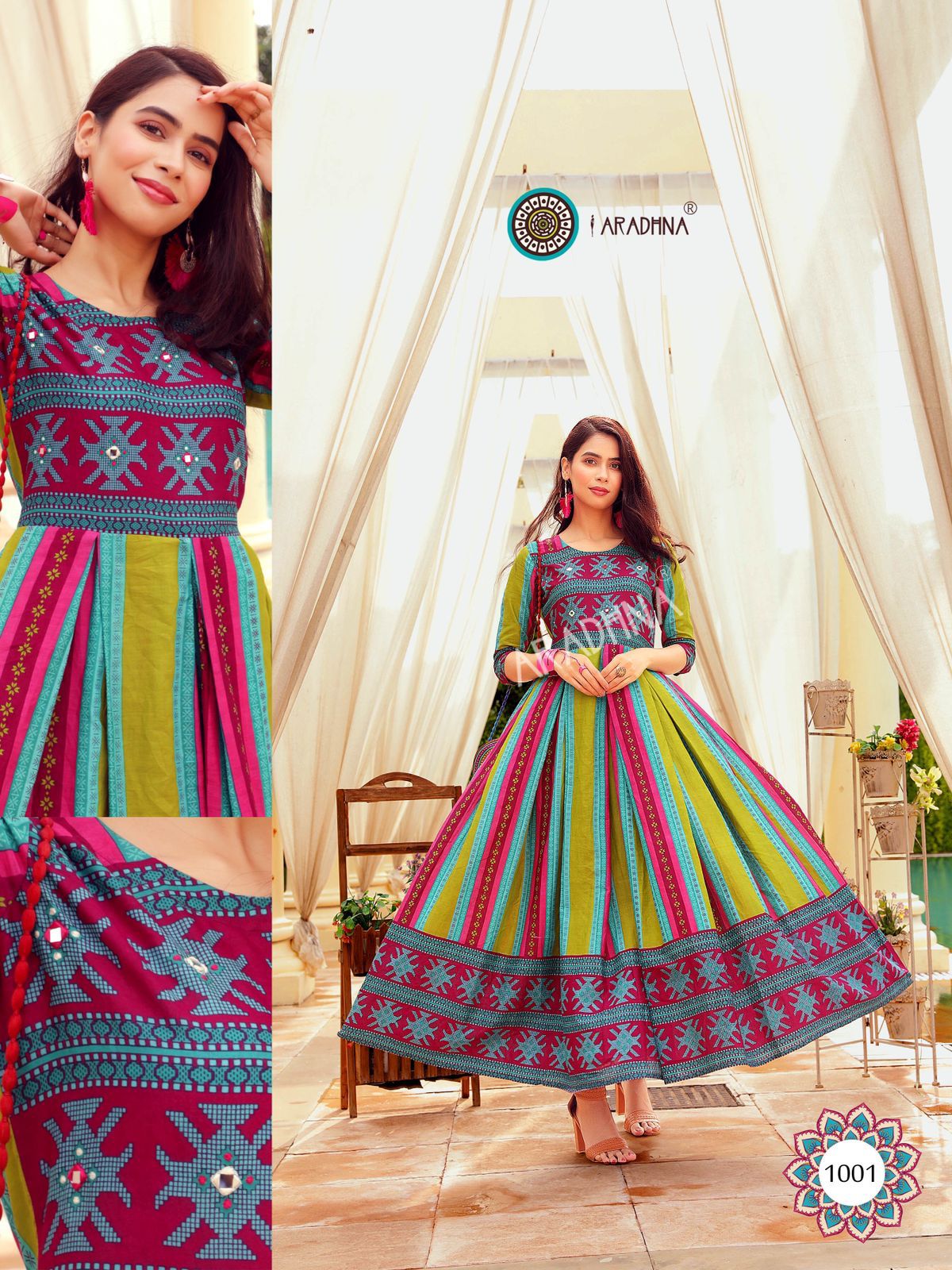 Aradhana Presents Fashion Stripy Vol-1 1001 - 1012 Series Heavy Cotton Striped Pattern With Decent Work Fancy Party Wear Gown Collection