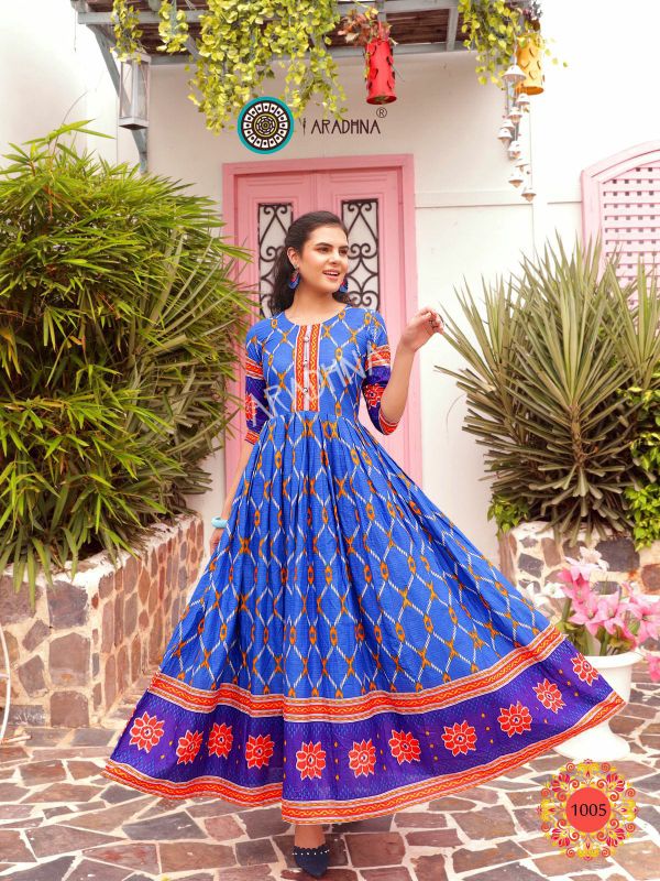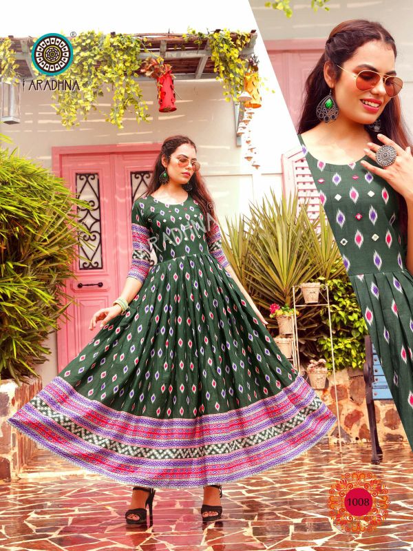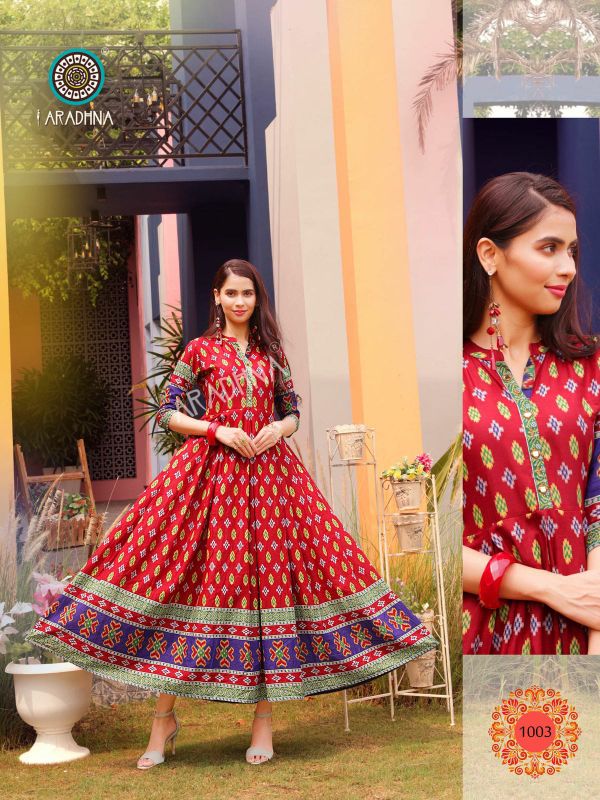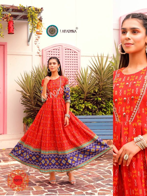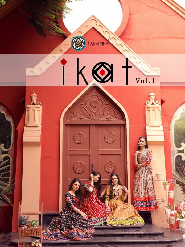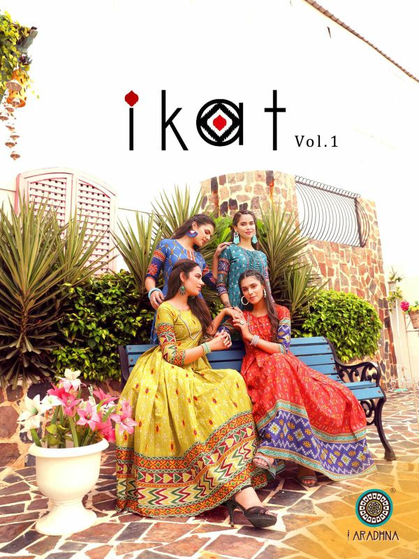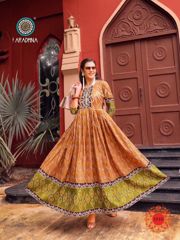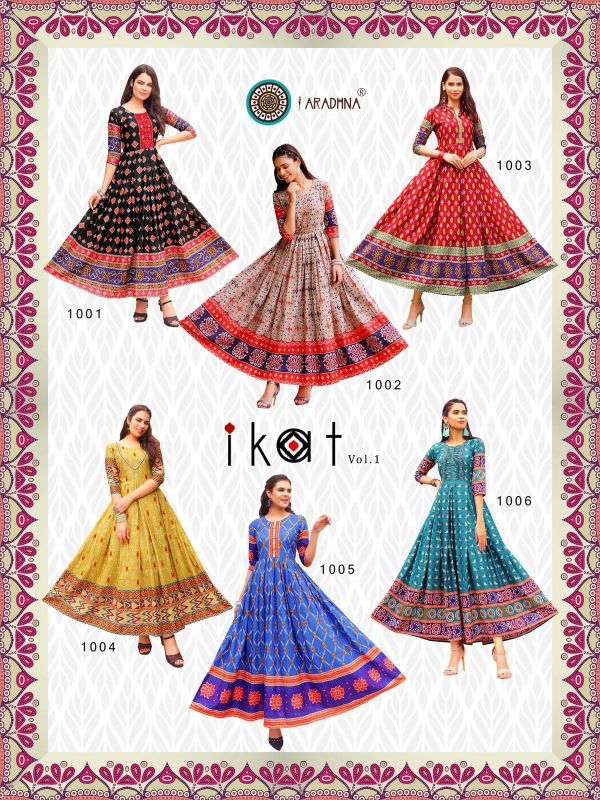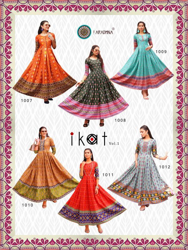 Aradhana Presents Ikat Vol-1 1001 -1012 Series Heavy Cotton With Work Fancy Long Gown Collection