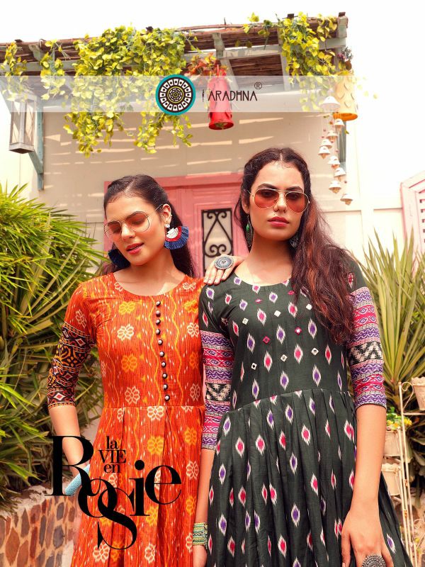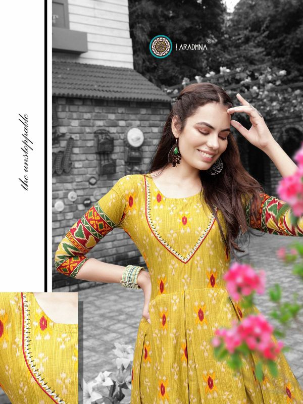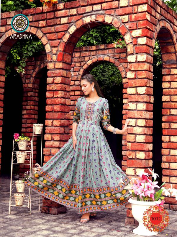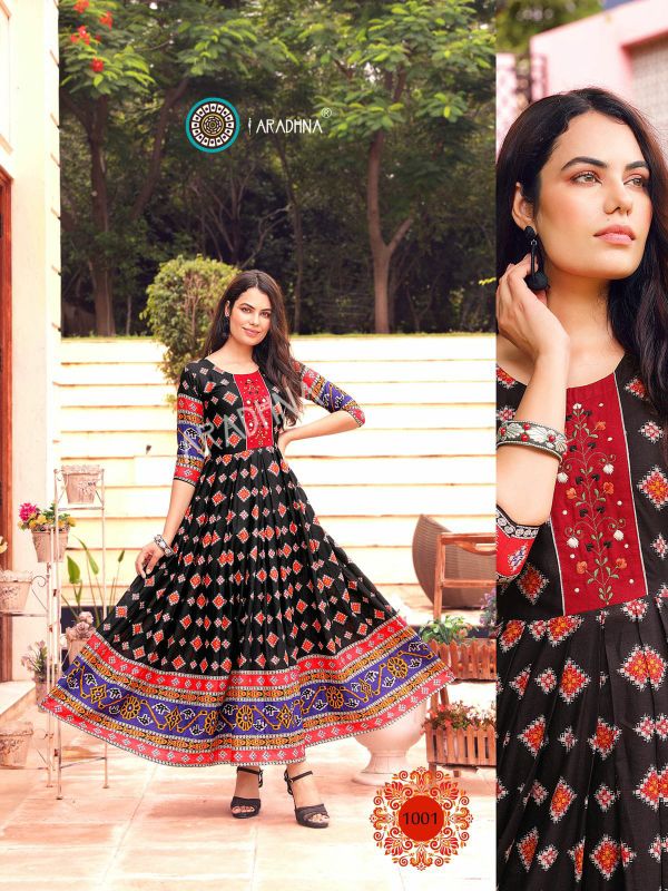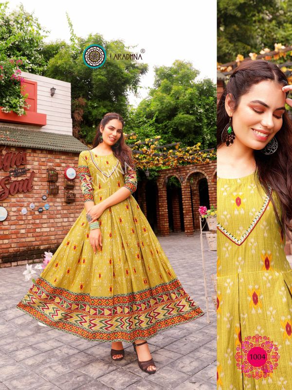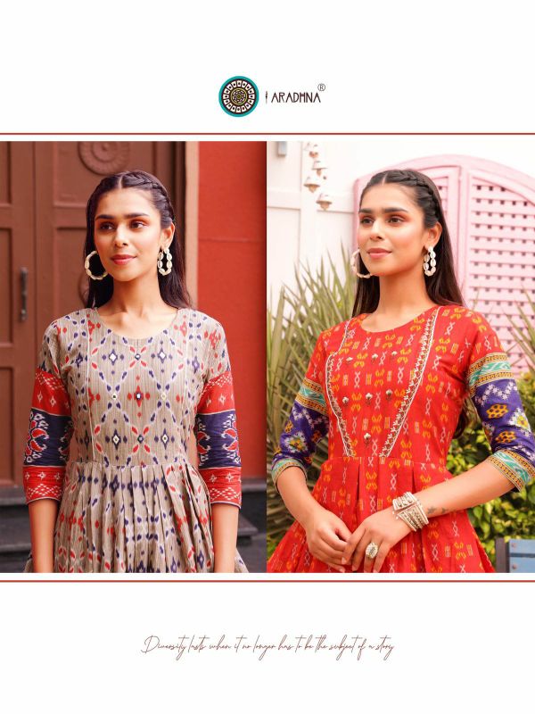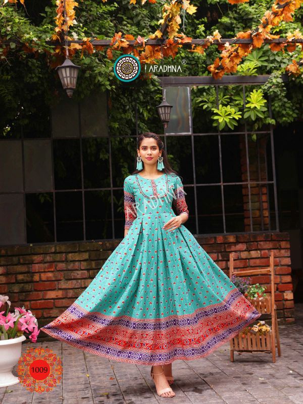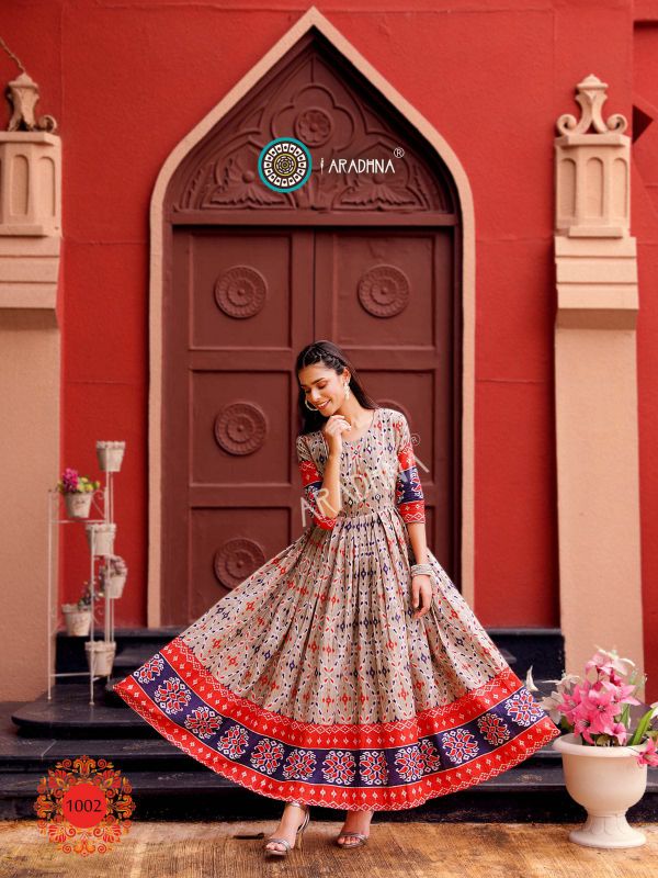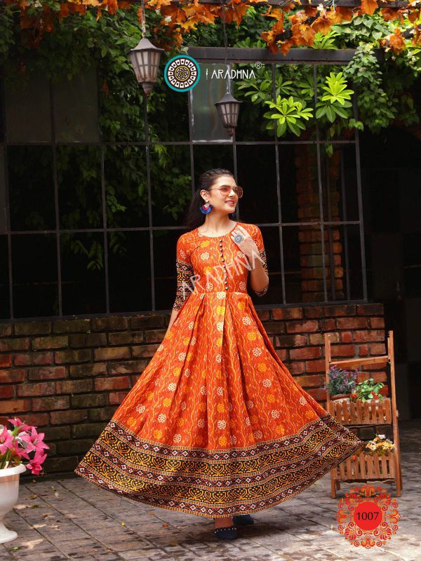 Aradhana Presents Ikat Vol-1 1001 -1012 Series Heavy Cotton With Work Fancy Long Gown Collection