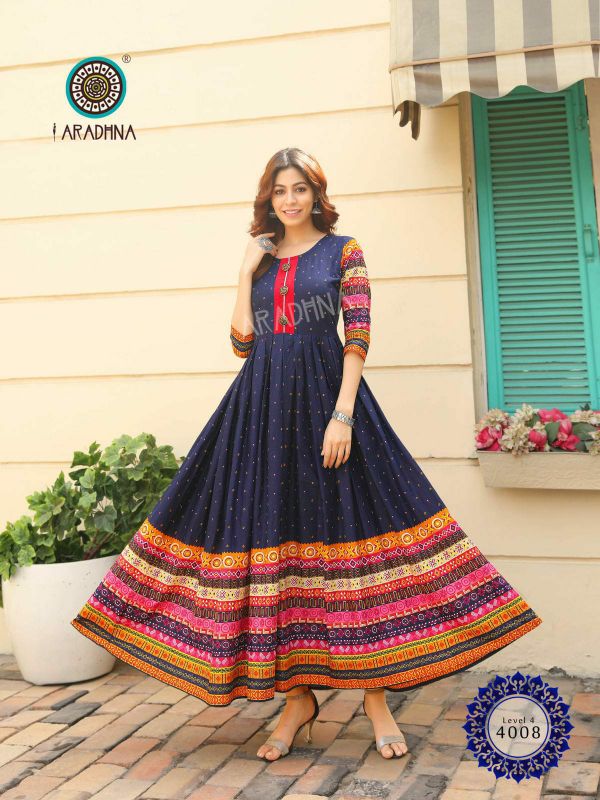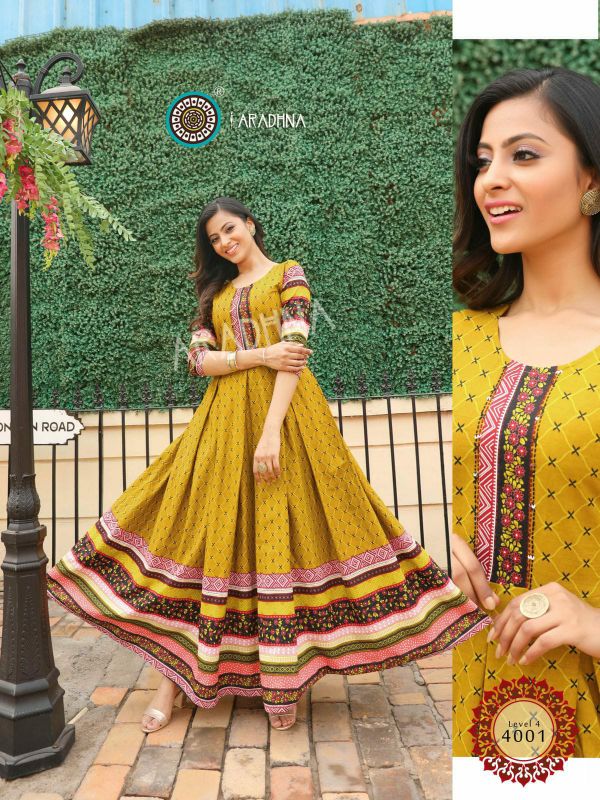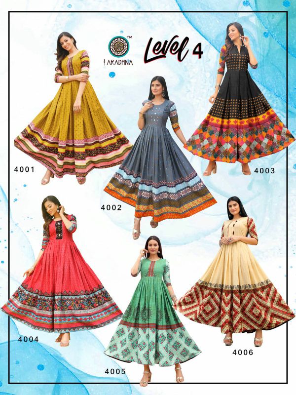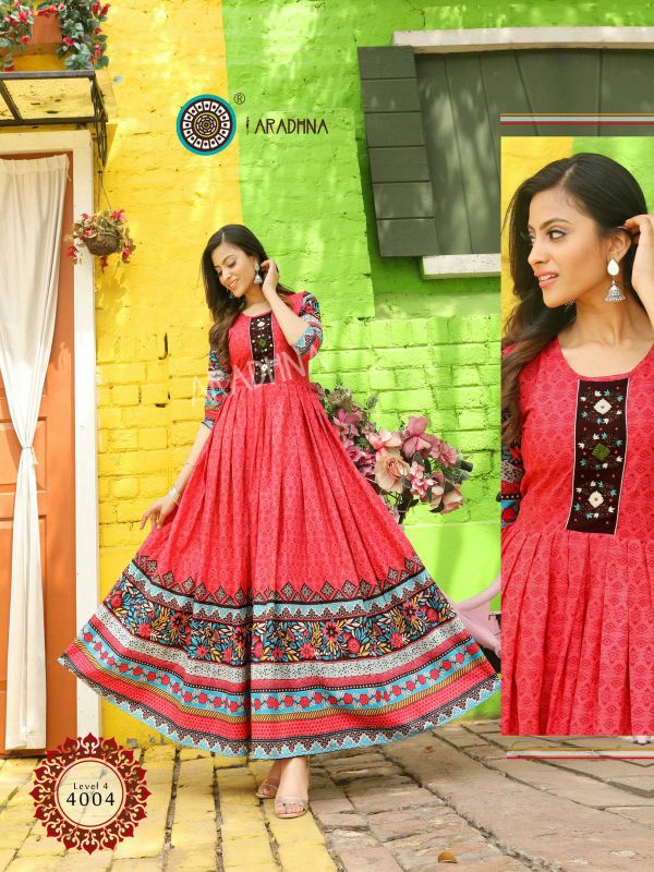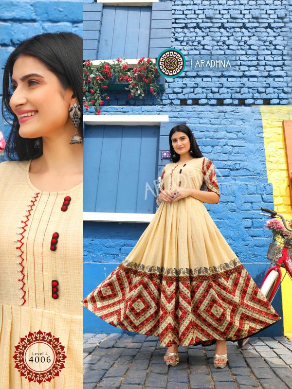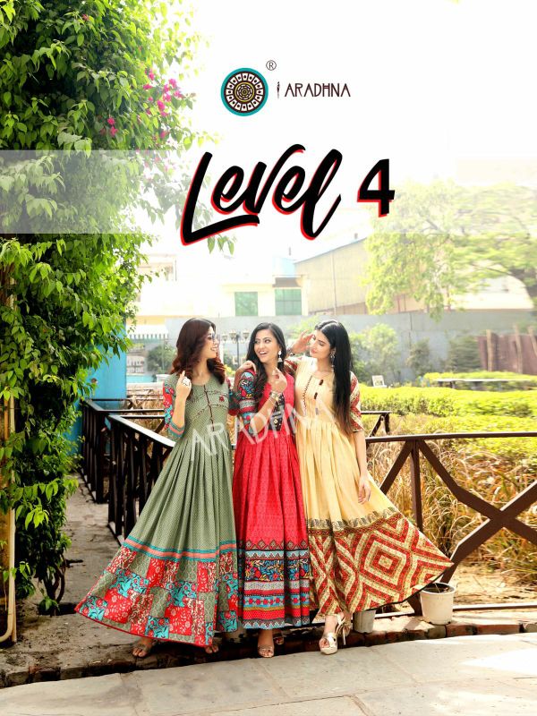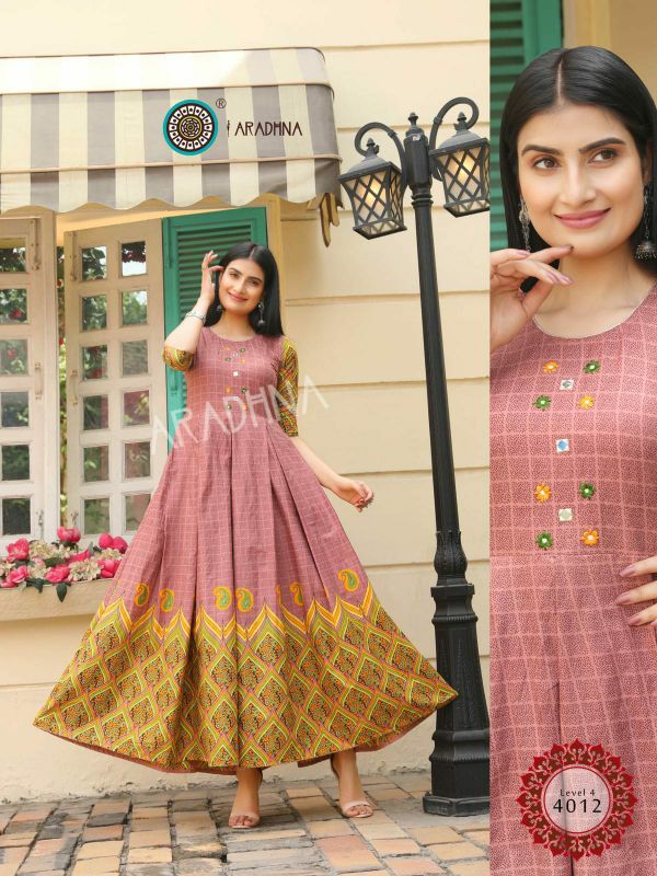 Aradhana Presents Level Vol-4 4001 - 4012 Series Heavy Cotton With Work Fancy Designer Long Gown Collection Special Offer