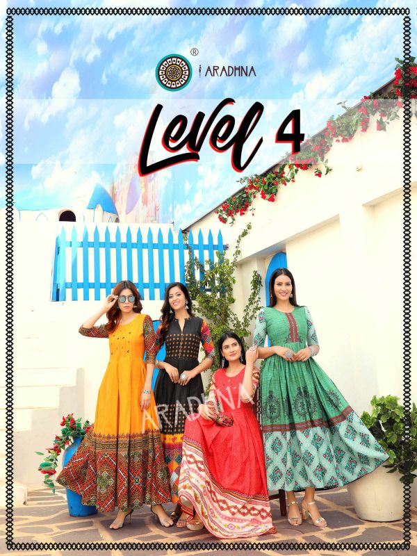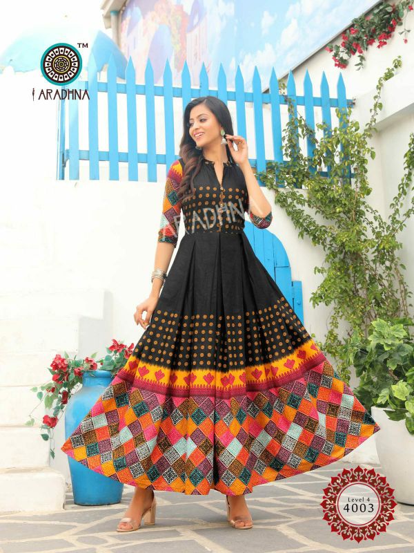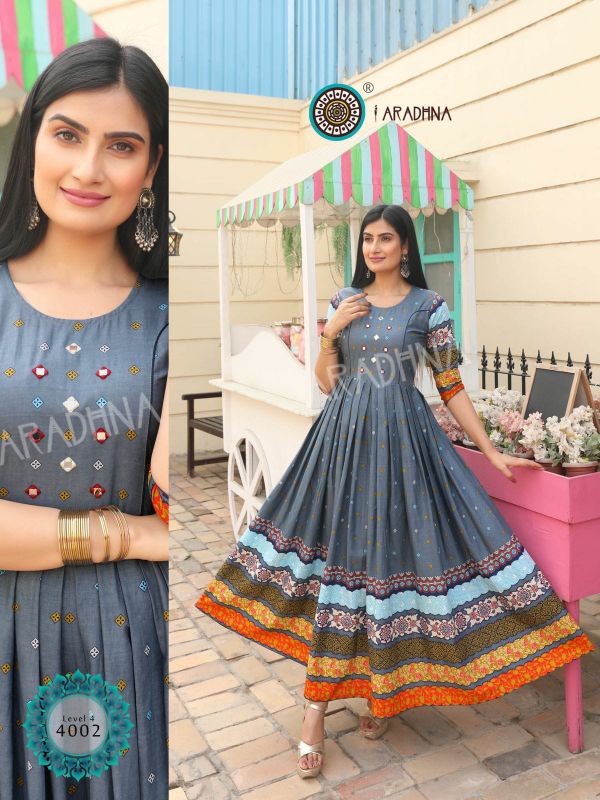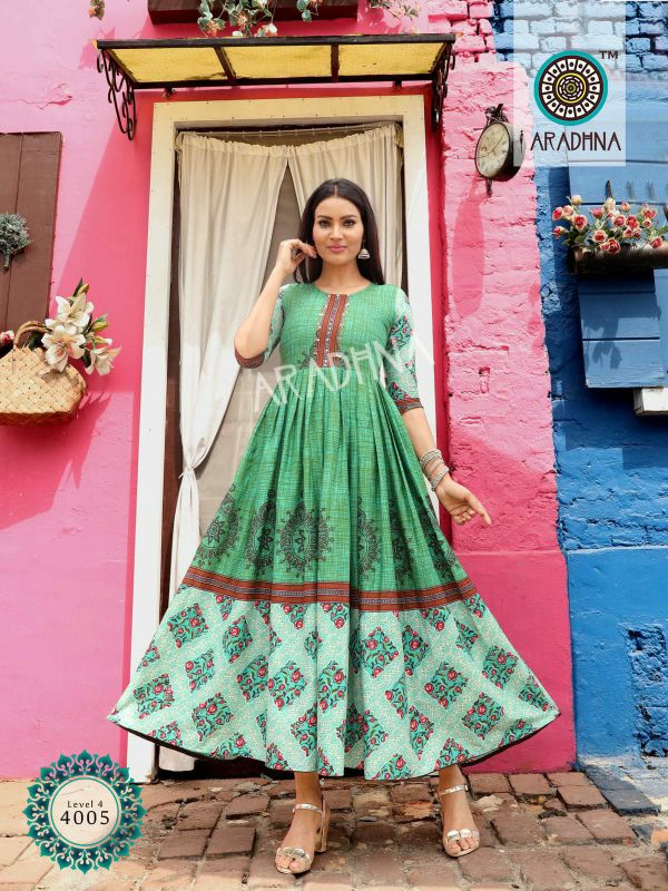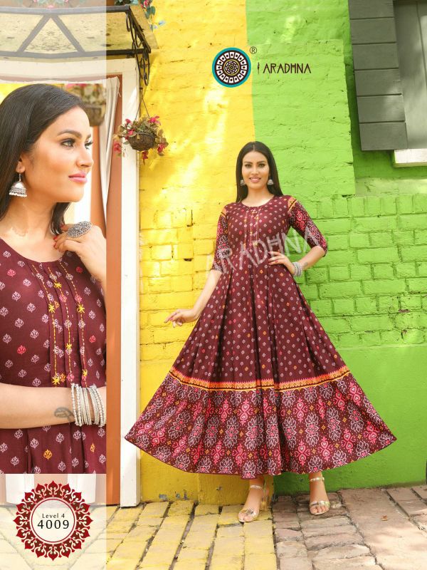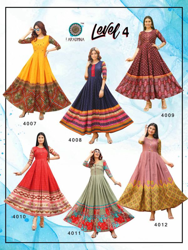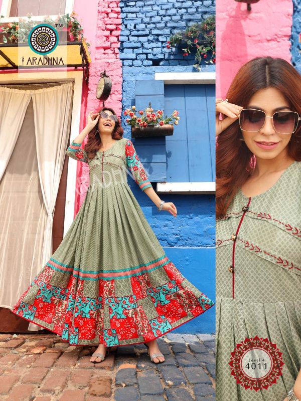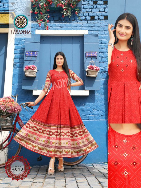 Aradhana Presents Level Vol-4 4001 - 4012 Series Heavy Cotton With Work Fancy Designer Long Gown Collection Special Offer