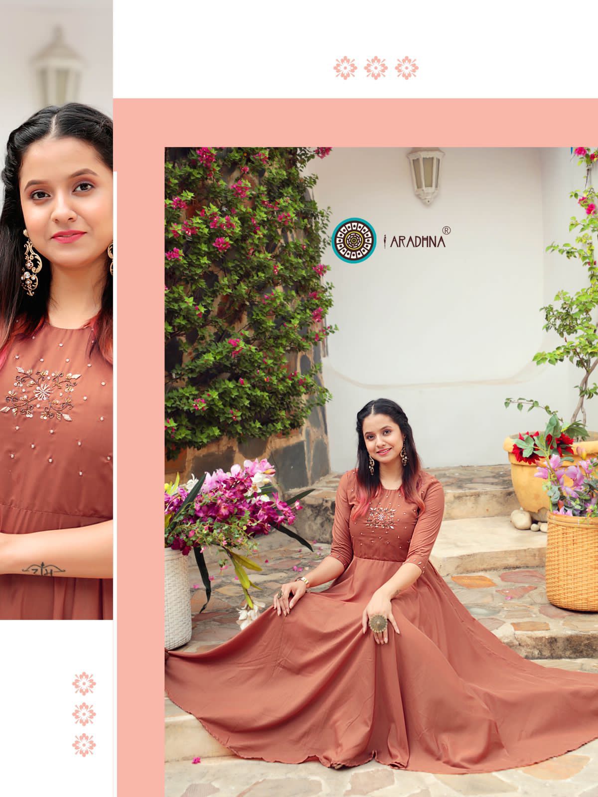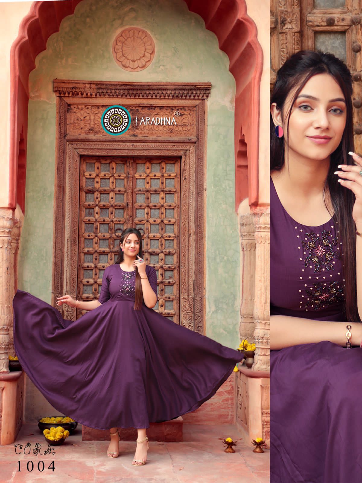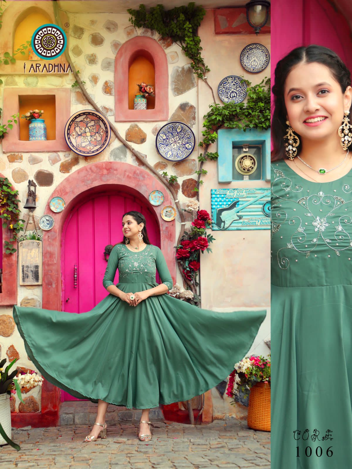 Aradhna Presents Fashion Core Vol-1 1001 - 1006 Series Cotton Silk With Handwork And Inner Fancy Beautiful Party Wear Long Gown Collection