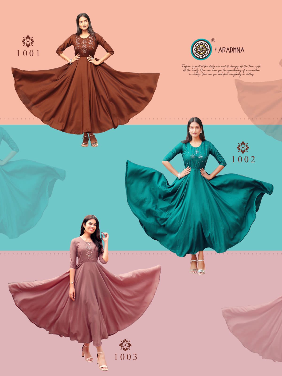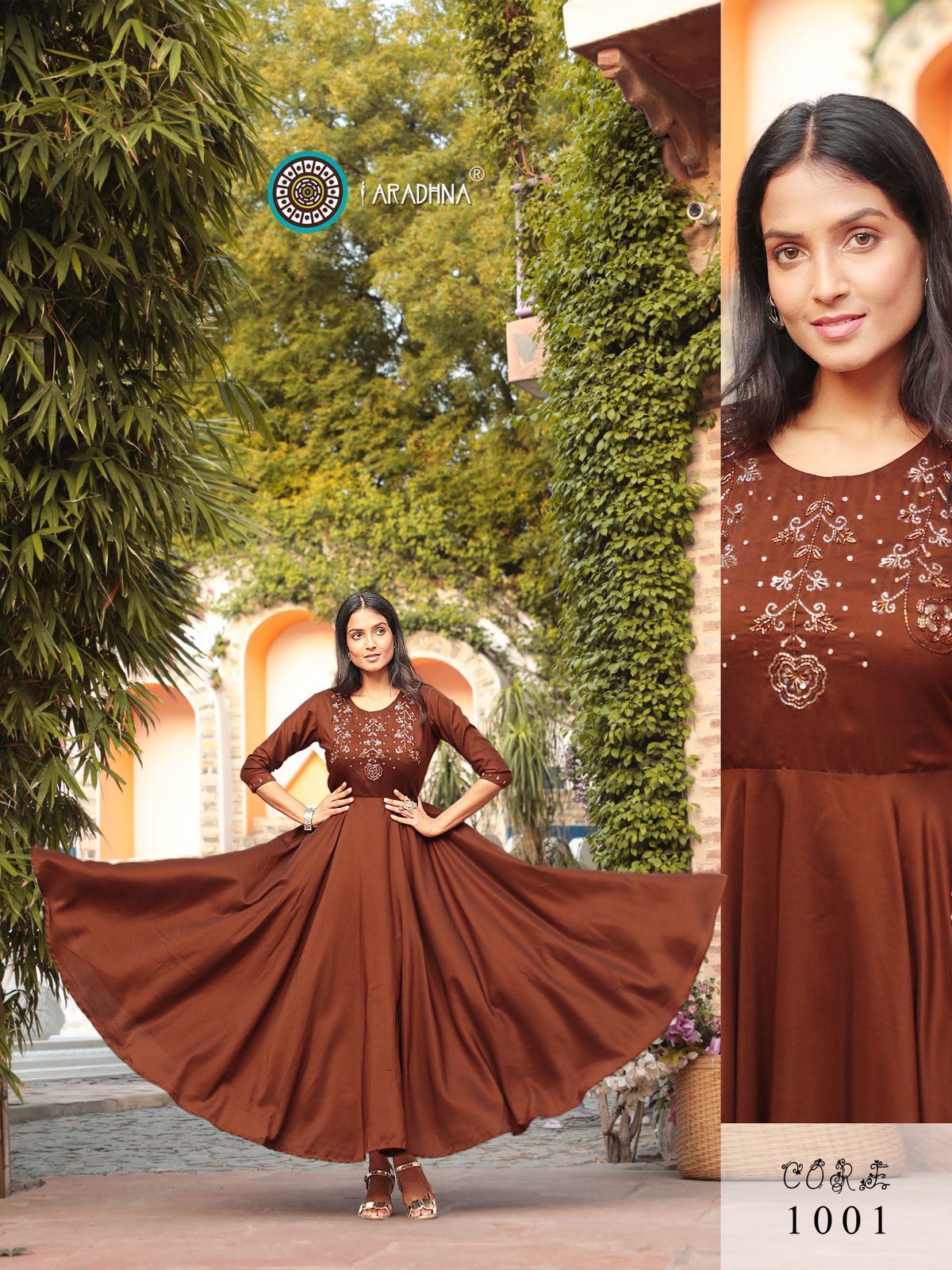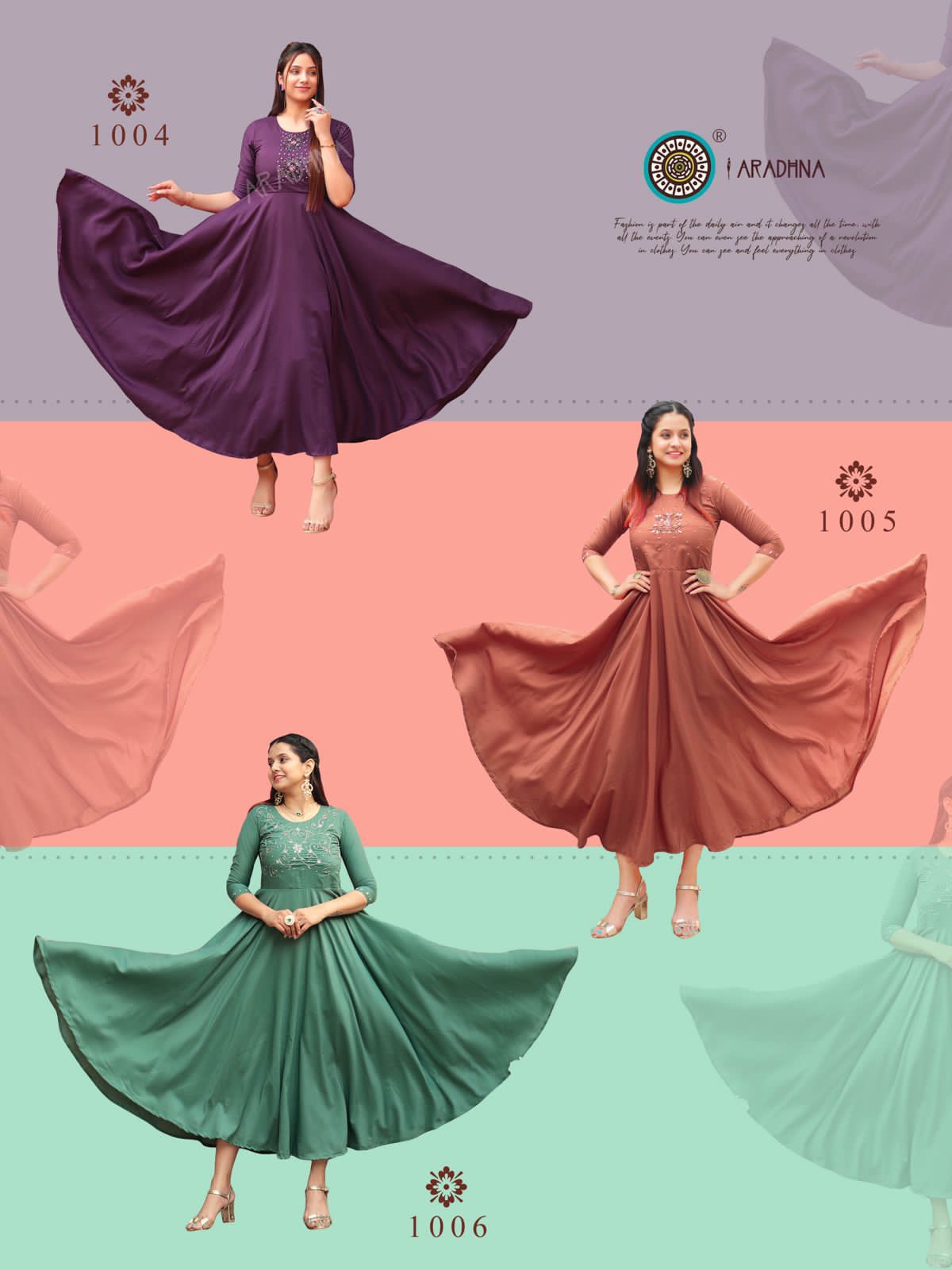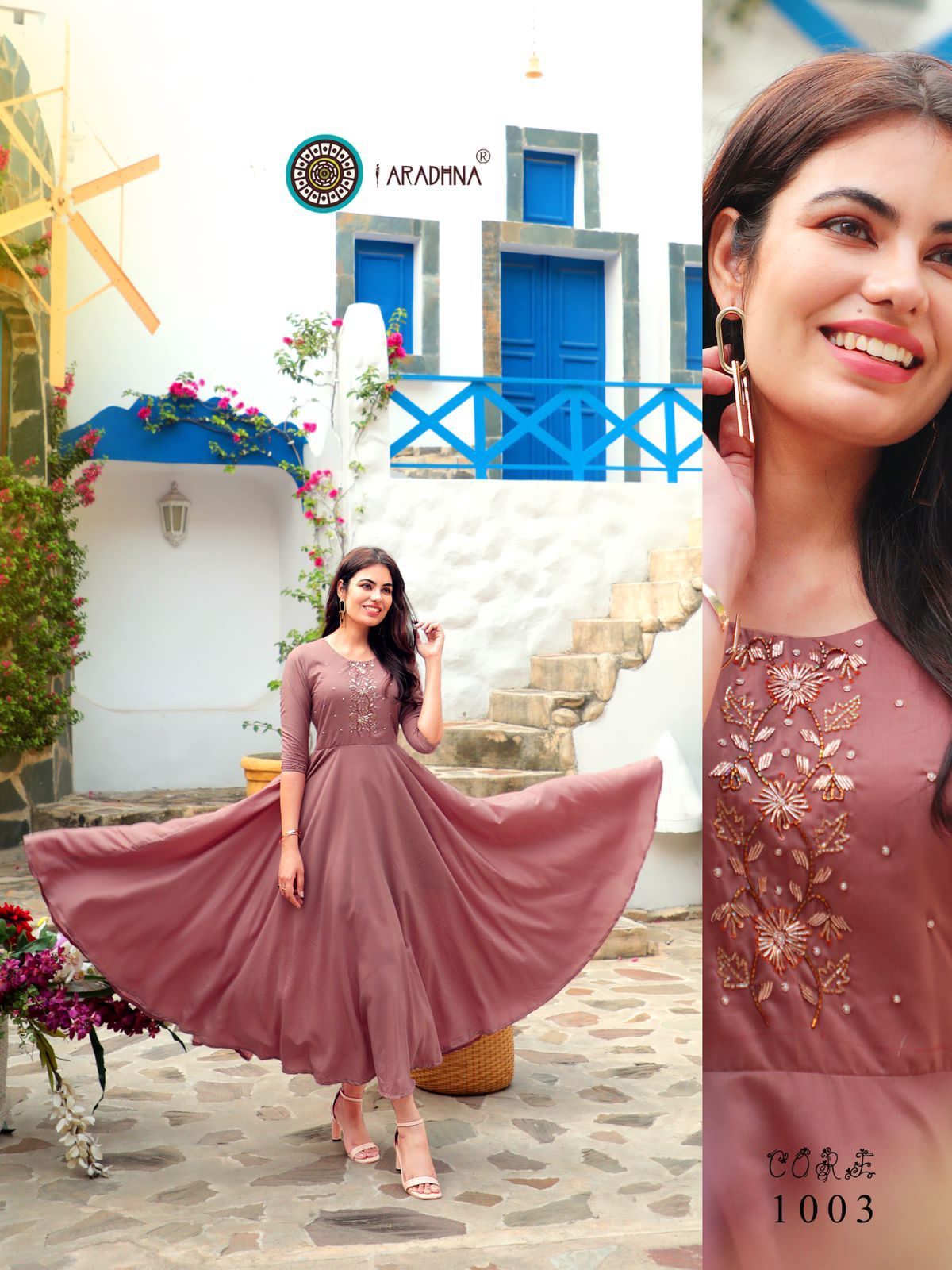 Aradhna Presents Fashion Core Vol-1 1001 - 1006 Series Cotton Silk With Handwork And Inner Fancy Beautiful Party Wear Long Gown Collection