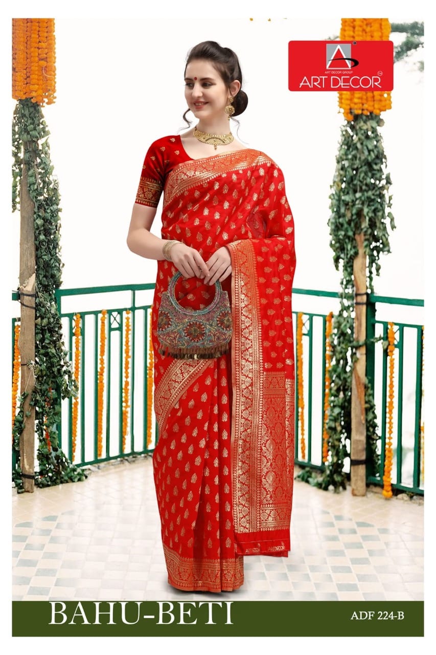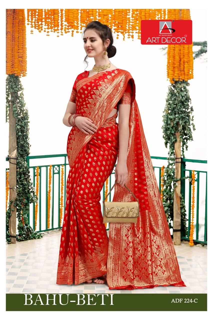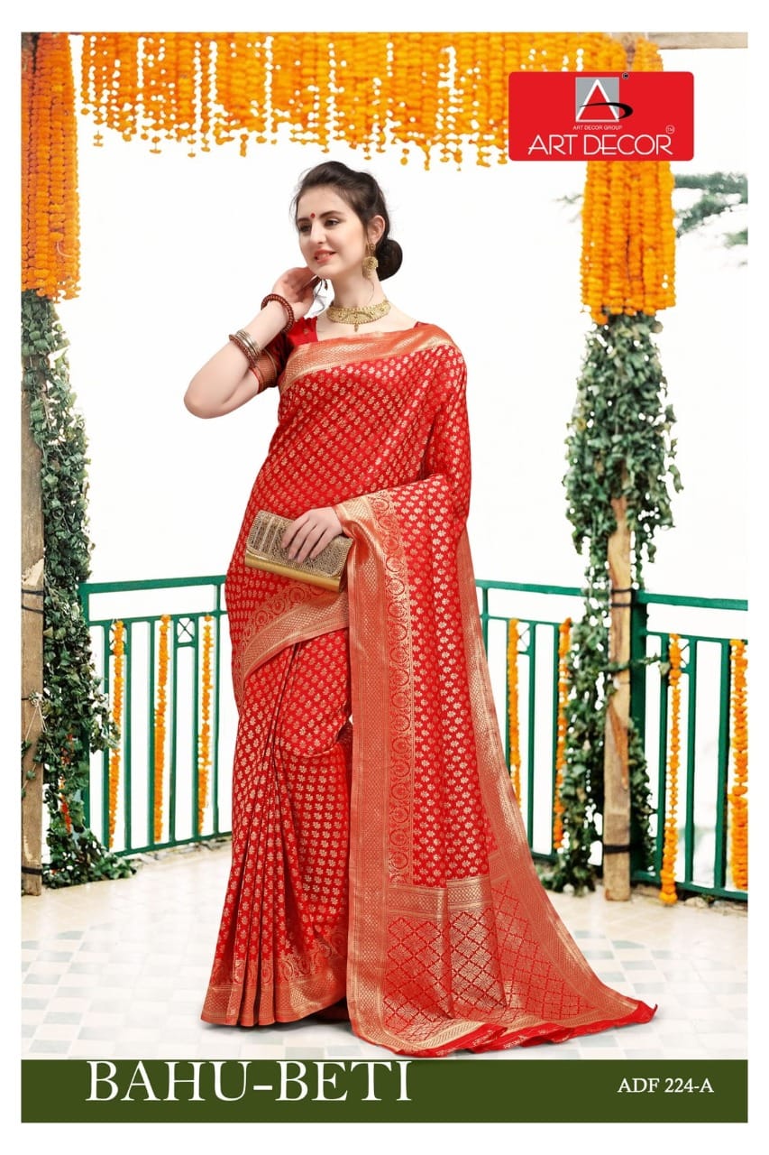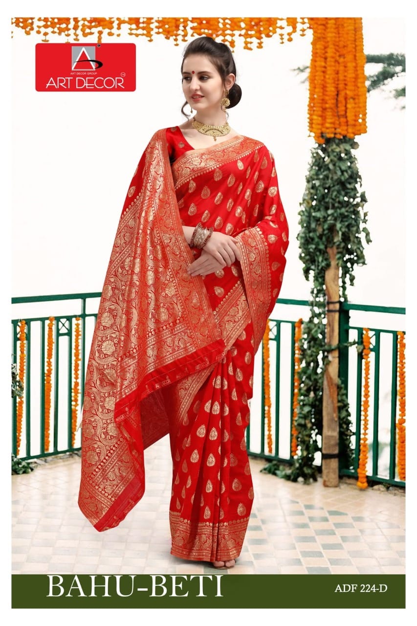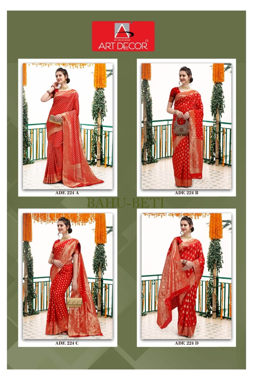 Art Decore Presents Bahu Beti 224a - 224d Series Handloom Base Cotton Fabric Fancy Festival Wear Saree Collection