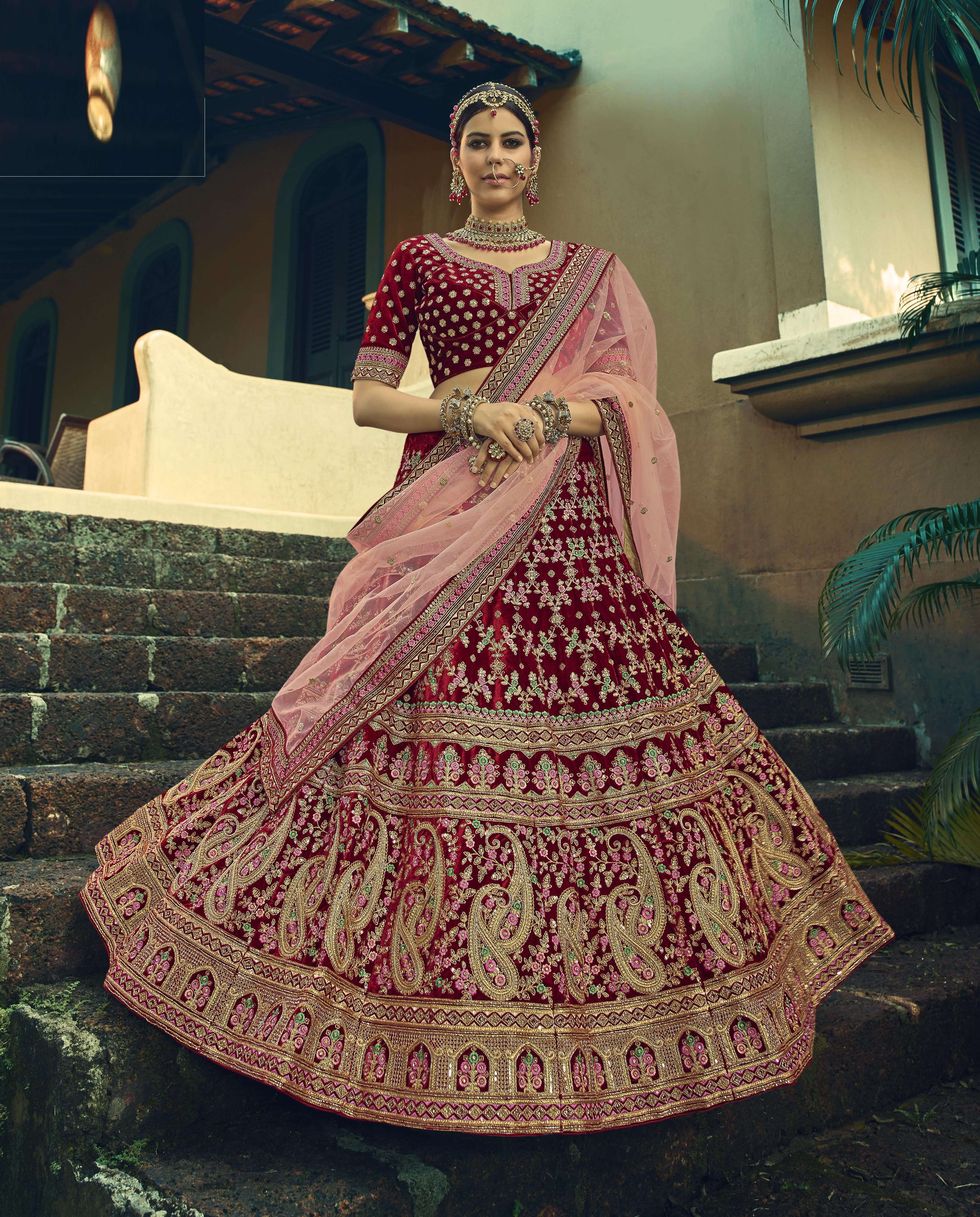 ARYA DESIGNS PRESENTS GULKHAND VOL- 5 INDIAN MAROON HEAVY BRIDAL DESIGNER LEHENGA CHOLI PARTY BRIDAL WEDDING WEAR COLLECTION 2828