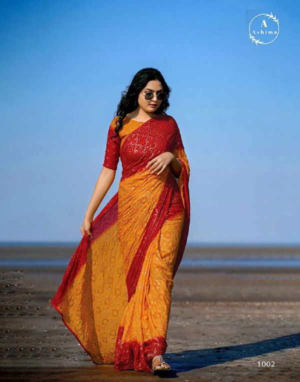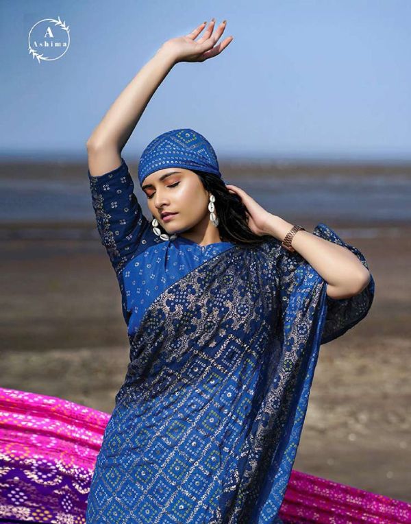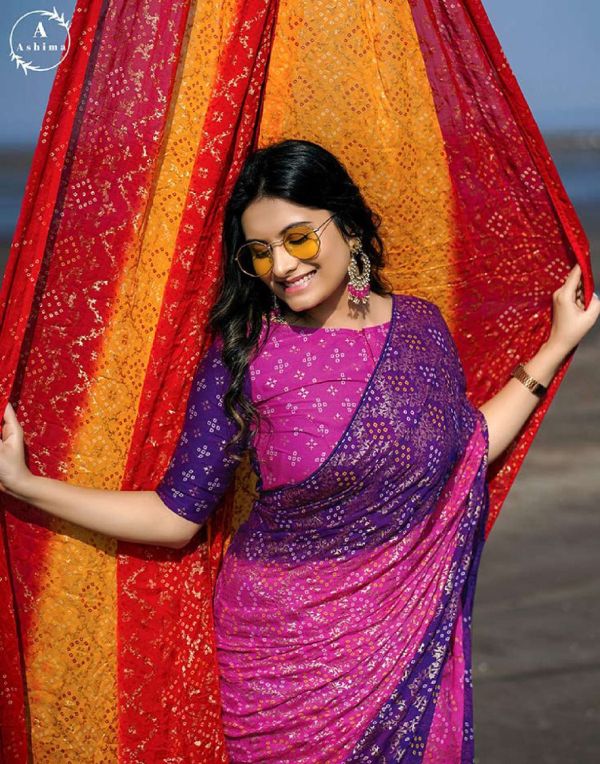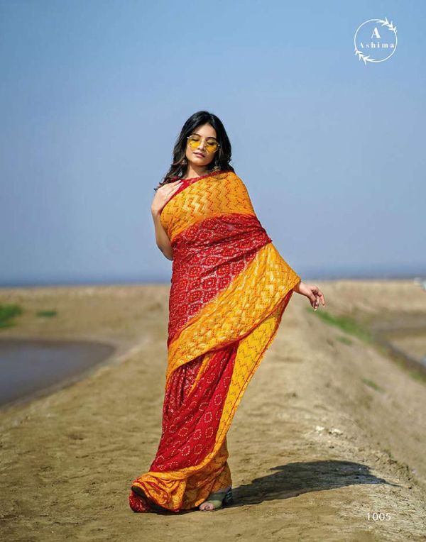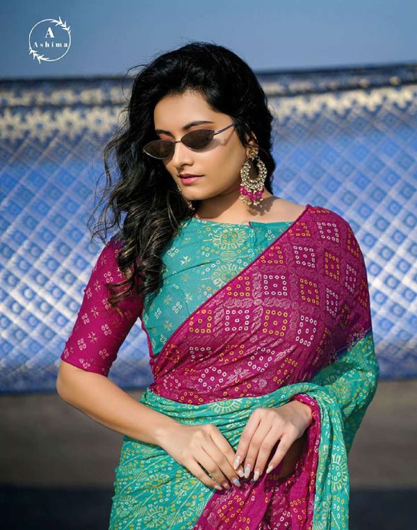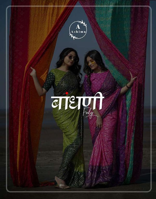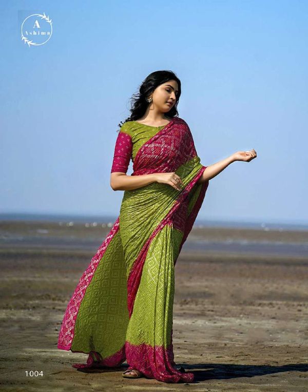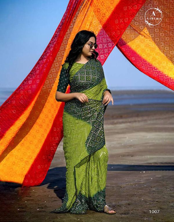 Ashima Presents Bandhni Foily 1001-1008 Series Moss With Foil Saree Collection