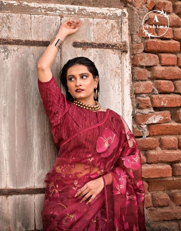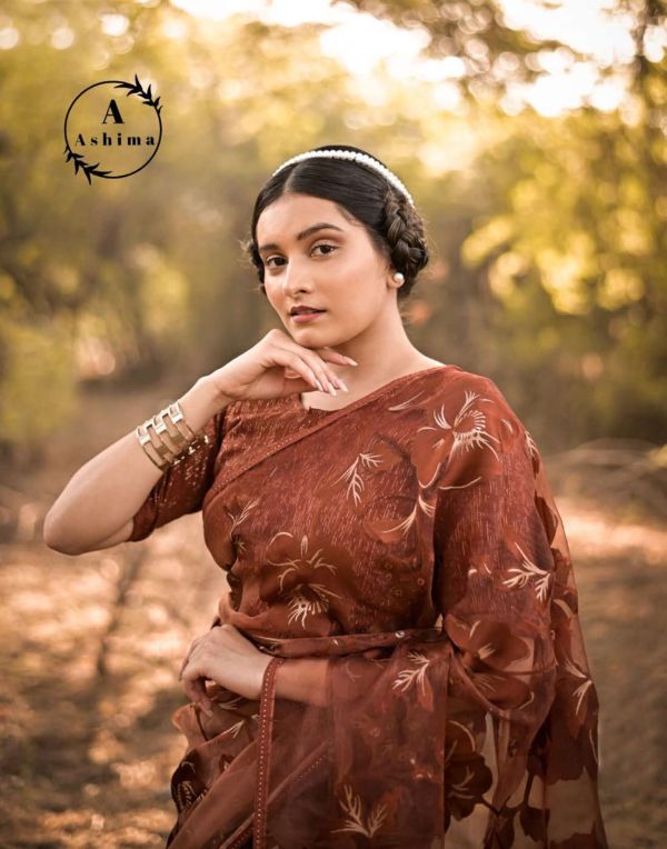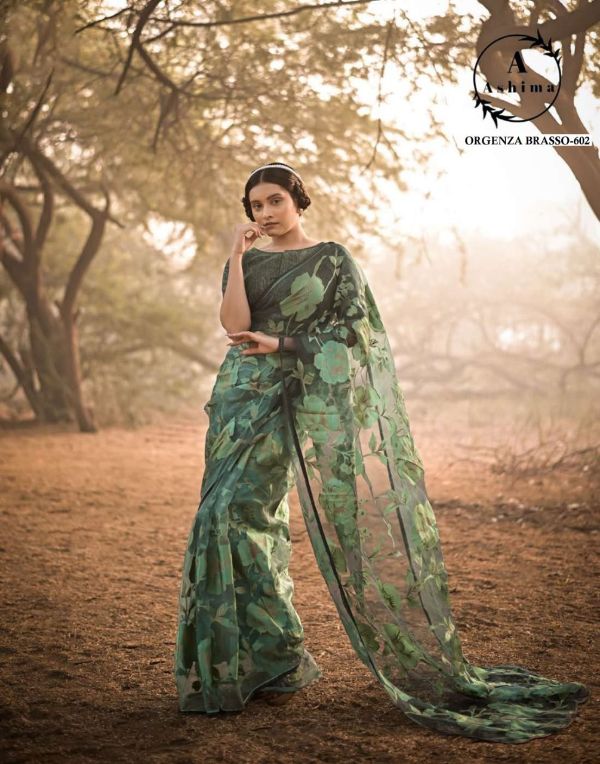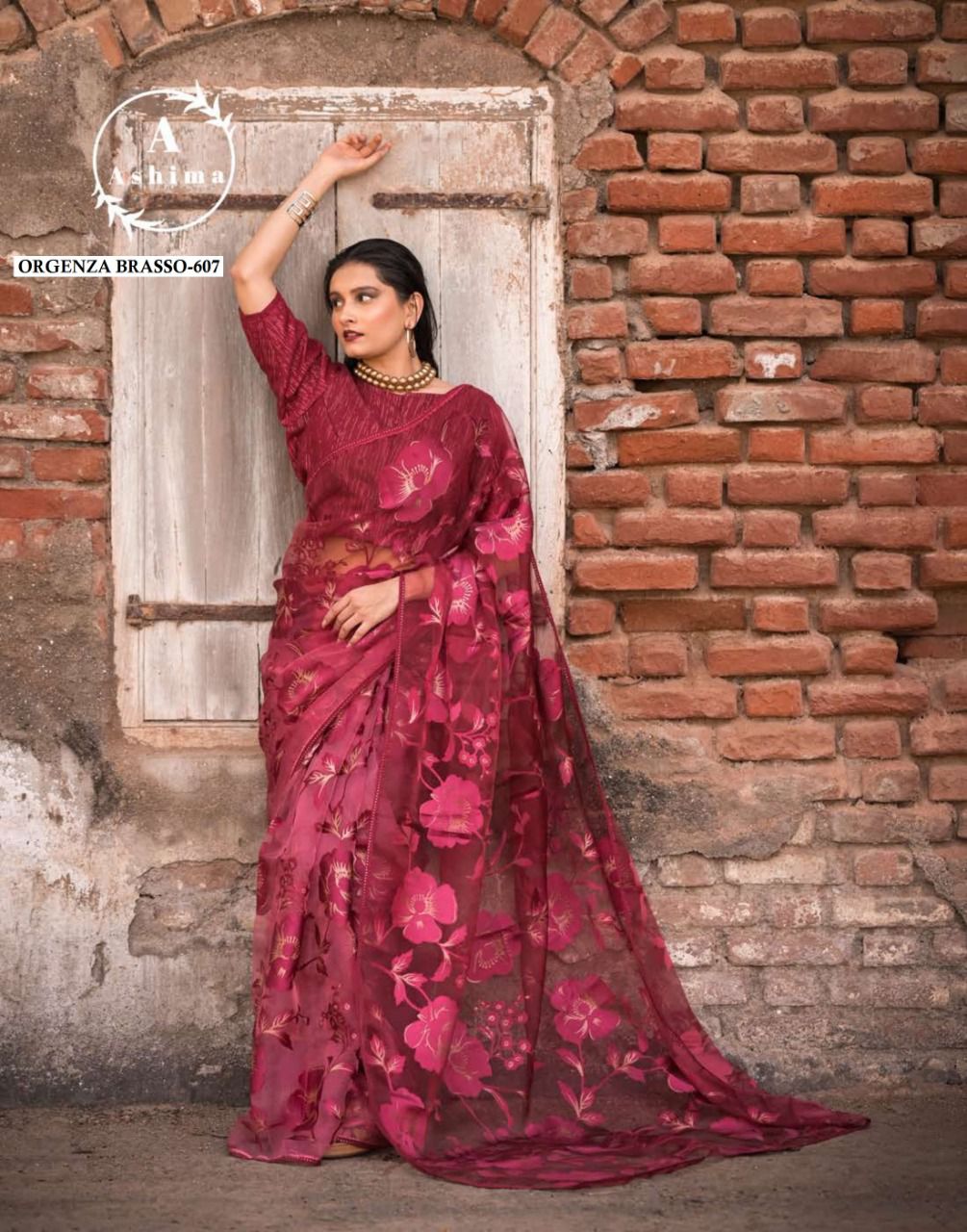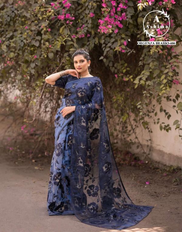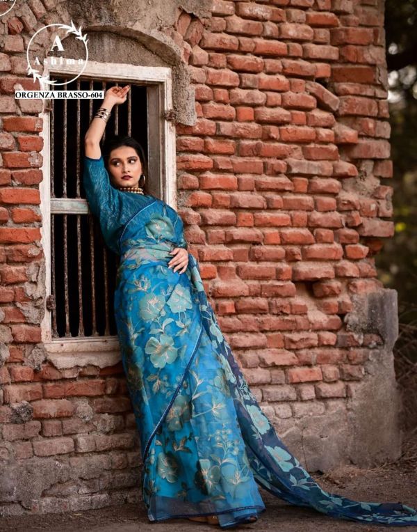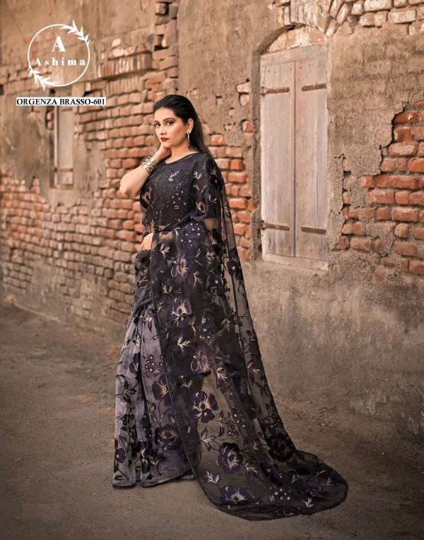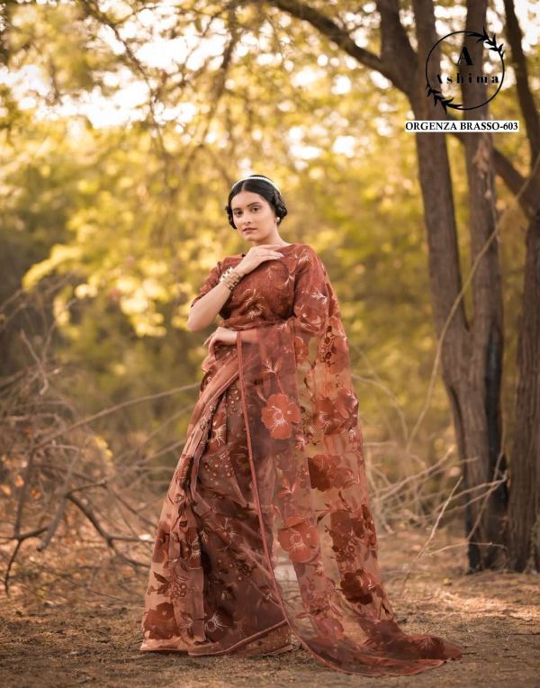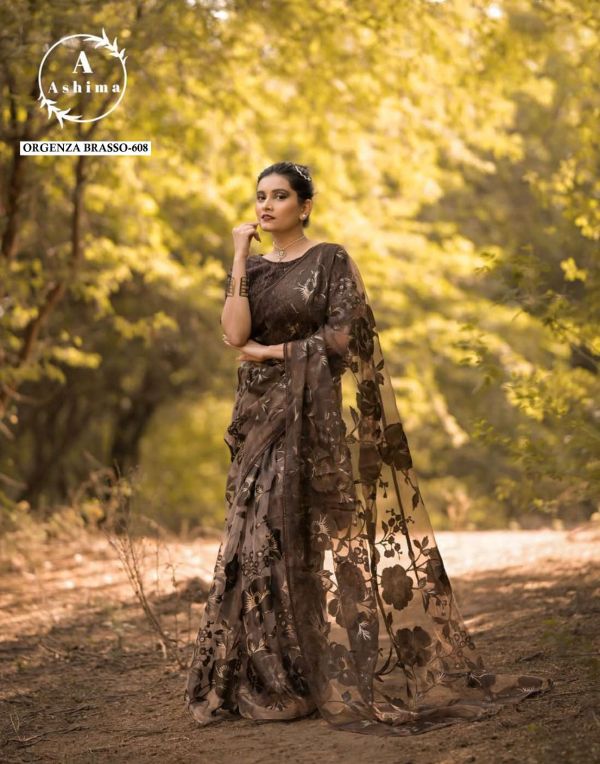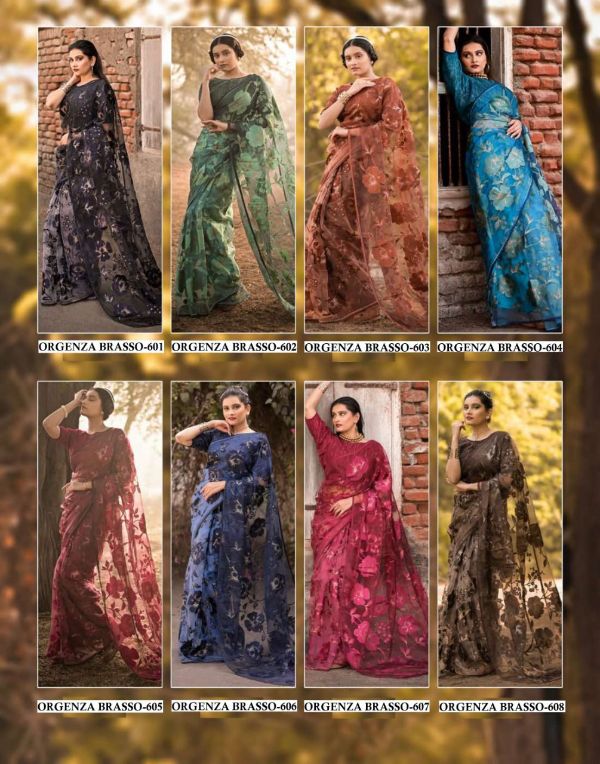 Ashima Presents Organza Brasso 601-608 Series Orgenza Brasso With Gold With Piping Stone Fancy Saree Collection#2070