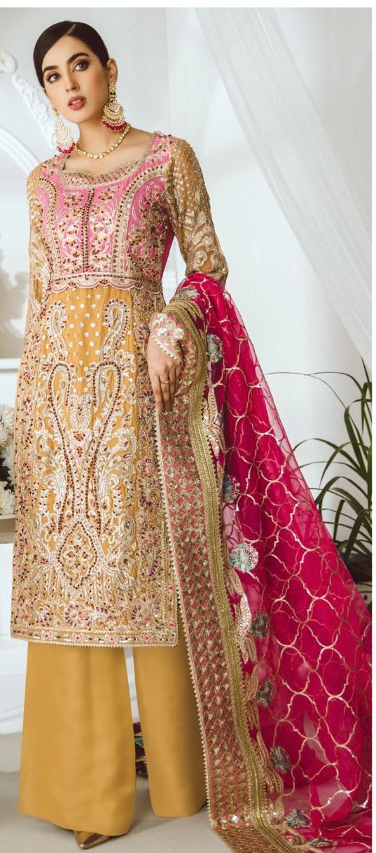 Latest Designer pakistani Collection. Exclusive with Foil & Thread Embroidery Work gives a Fashionable Look, High sensed style and luxury makes you ready for envious glazes and very rich & Royal in the Party, Function, Event etc.