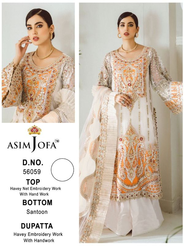 Asim Jofa Dn 56059-56062 Series Heavy Net Embroidery With Handwork Pakistani Collection#1751