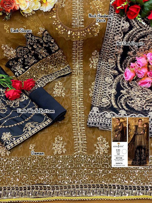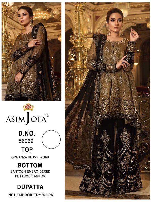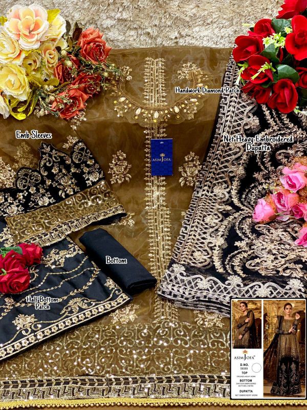 Asim Jofa Presents 56069 Organza With Heavy Work Pakistani Suits Collection#1785