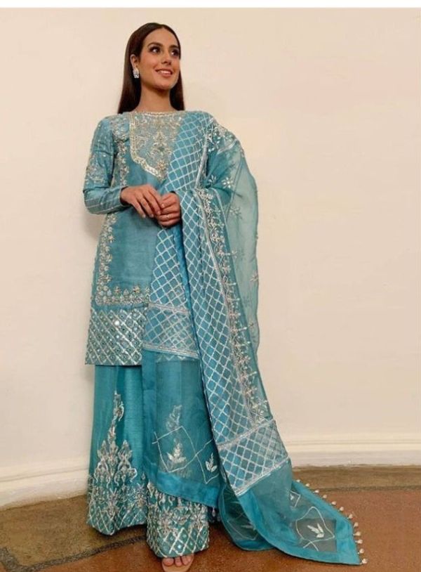 Latest Designer pakistani suits Collection. Exclusive with Foil & Thread Embroidery Work gives a Fashionable Look, High sensed style and luxury makes you ready for envious glazes and very rich & Royal in the Party, Function, Event etc.