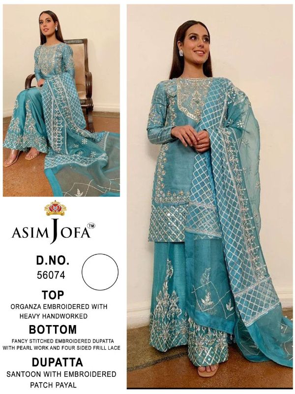 Asim Jofa Presents 56074 Organza Embroidery With Heavy Hand Work Pakistani Collection #1784