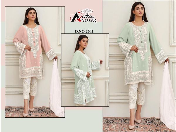 Atta Trendz Dno. 2703 Pure Georgette With Embroidery And Mirror Work Pakistani Collection