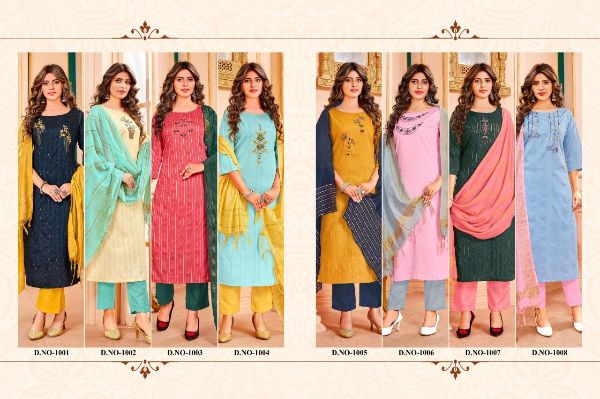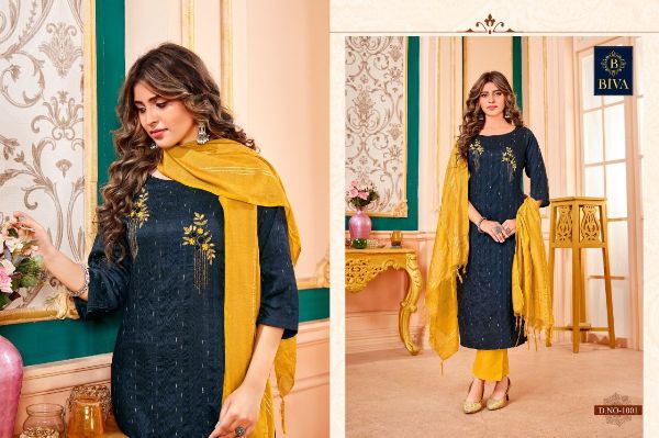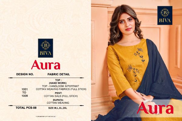 Aura Presents Biva 1001-1008 Series Handloom Imported Cotton Weaving Salwar Kameez Collection