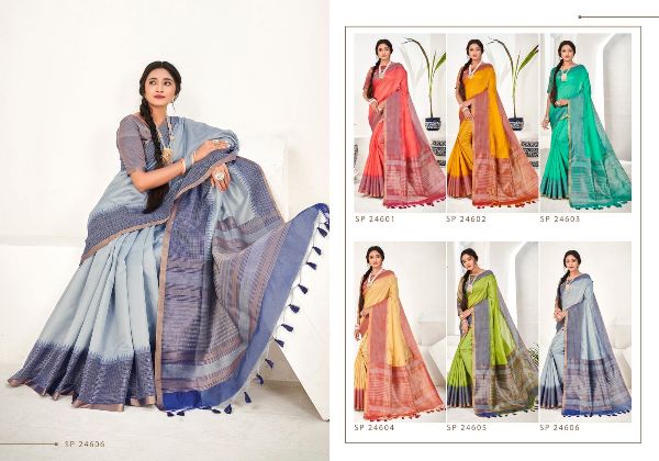 Aura Presents The Yarn Story 24601-24606 Series Cotton Base Beautiful Saree Collection