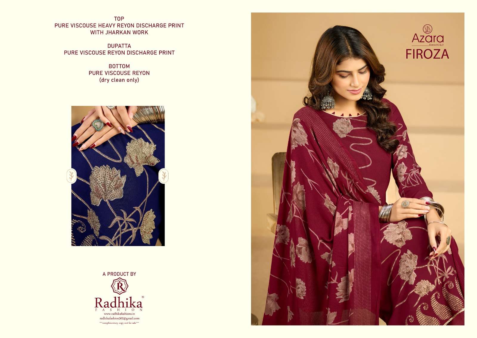 | Catalogue: | Azara FIROZA Pure Viscose Rayon Discharge Print & Zarkan Work Suit |
