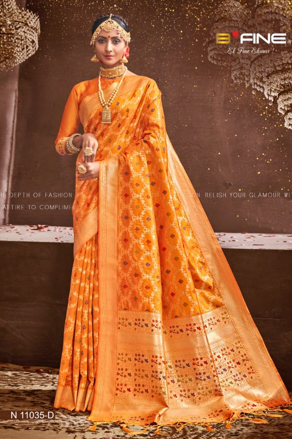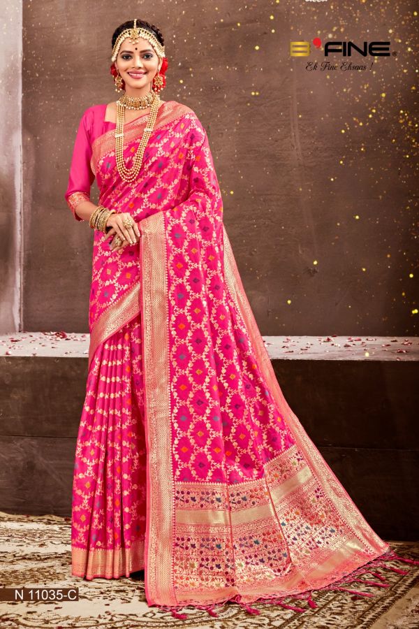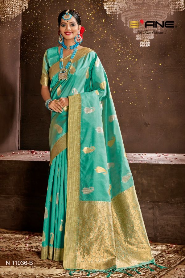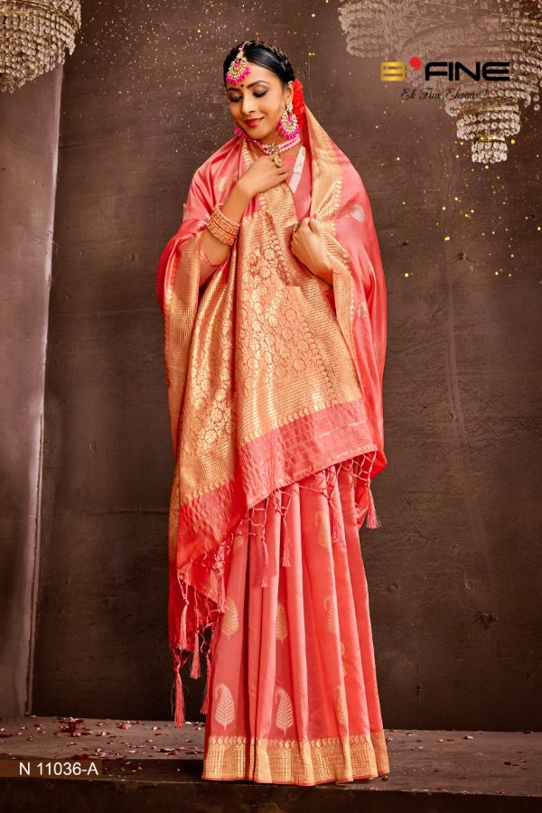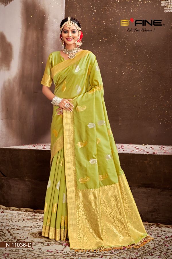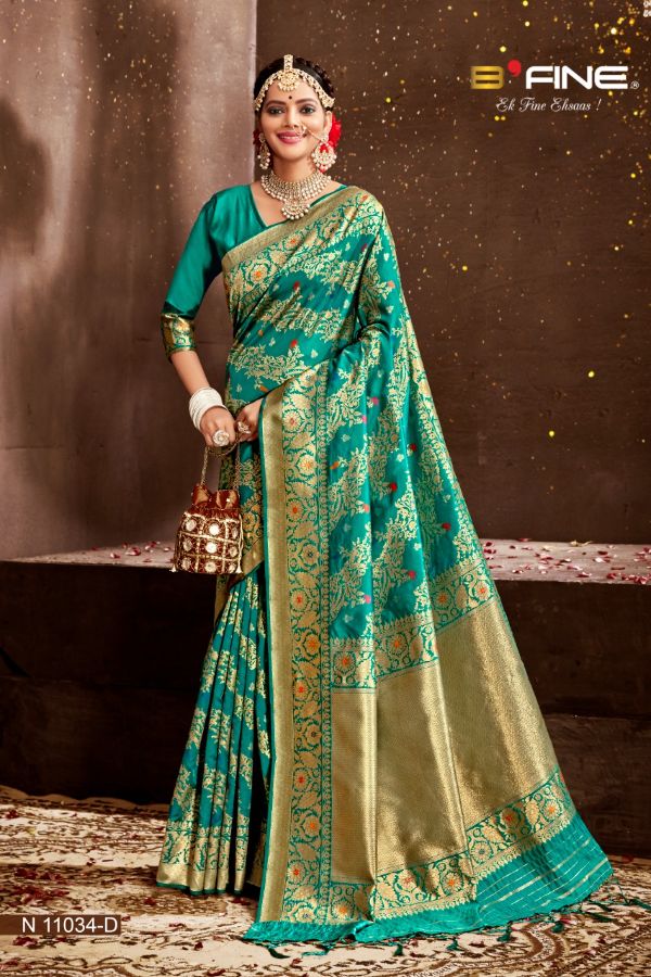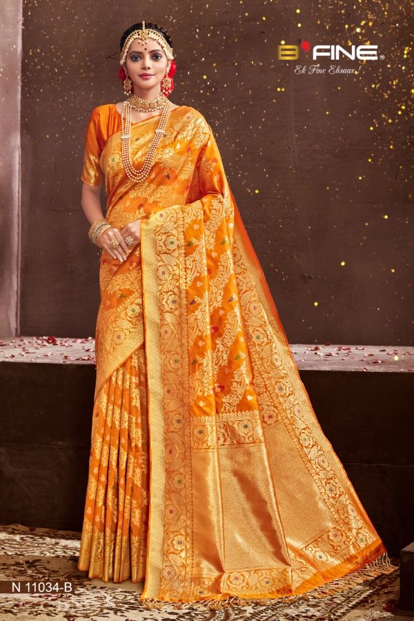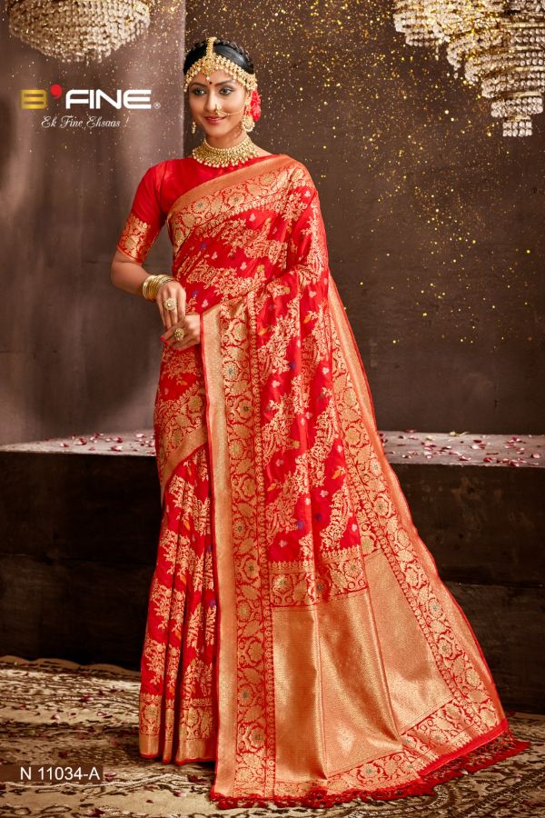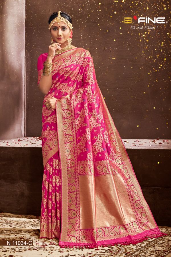 B Fine Presents Art Of Banaras 11034a - 11036d Series Beautiful Silk With Attractive Designer Print Function Wear Saree Collection