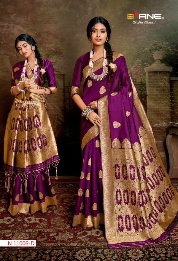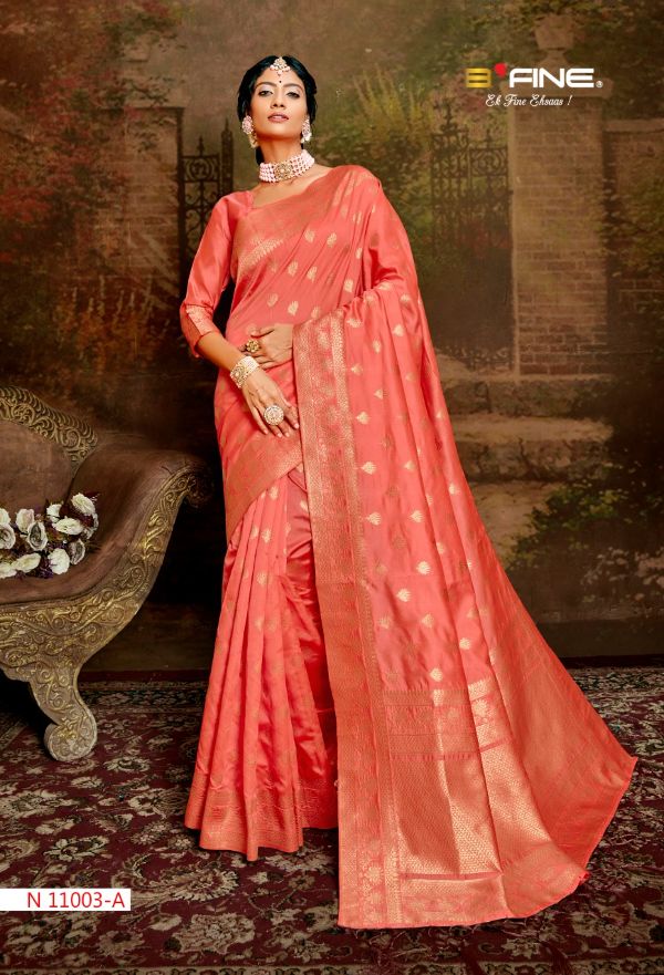 B Fine Presents Jamdhani 11001a - 11001d Series Beautiful Designer Print With Attractive Colours Fancy Saree Collection