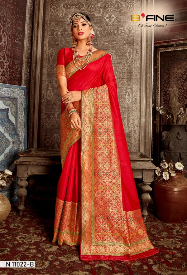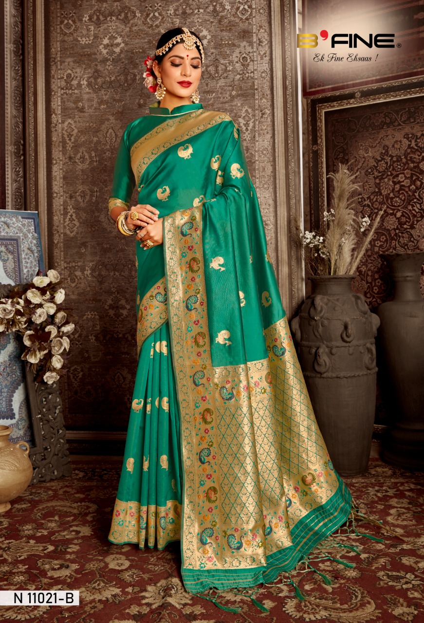 B Fine Presents Meenakari 11019a - 11019d Series Heavy Designer With Attractive Wear Festival Wear Saree Collection Wholesale Rate