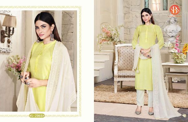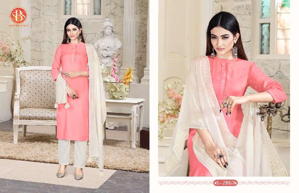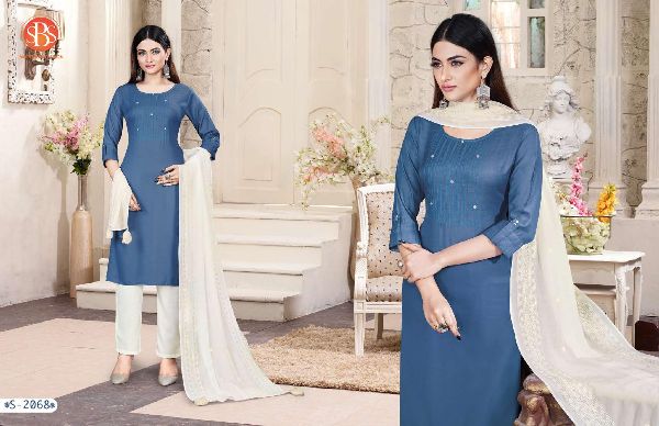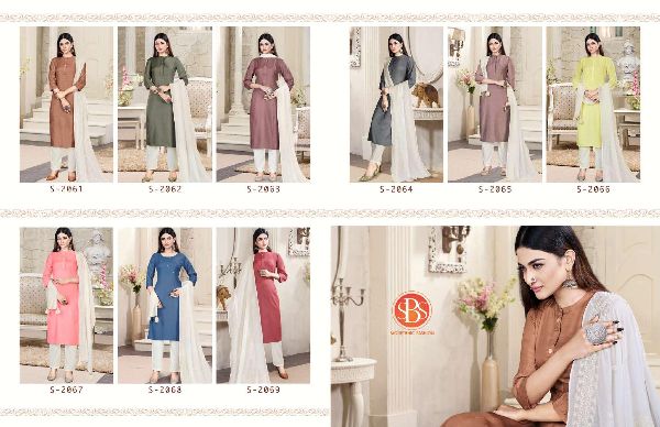 Balaji Emporium Aaisha S-2061-s-2069 Series Linen Kurti With Bottom And Mul Dupatta Collection