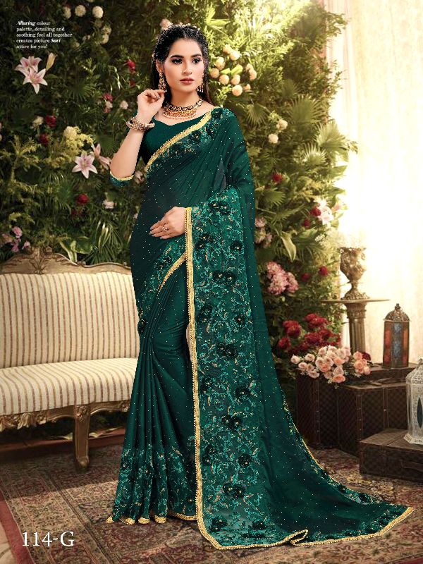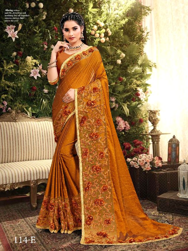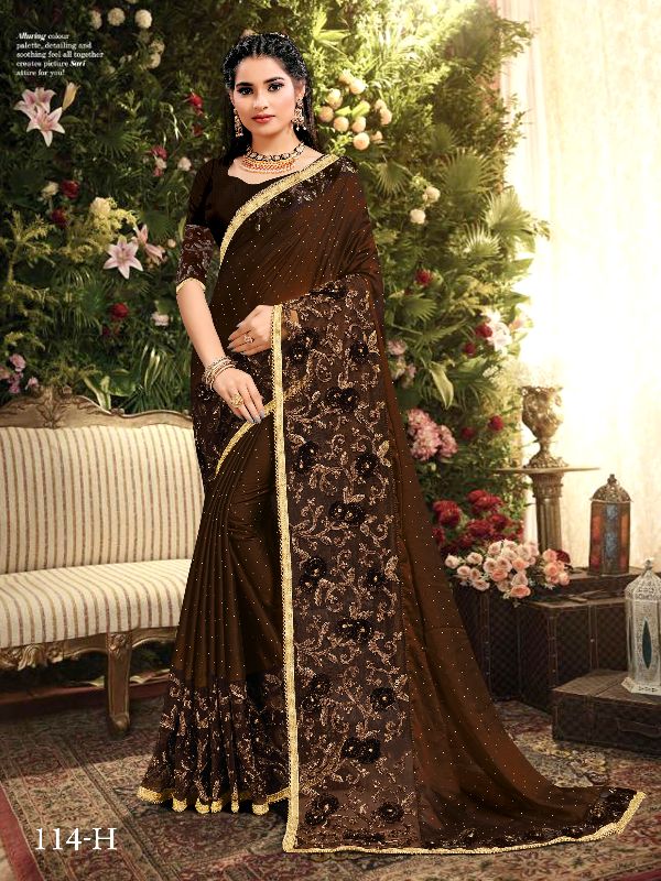 Latest Designer saree Collection. Exclusive with Foil & Thread Embroidery Work gives a Fashionable Look, High sensed style and luxury makes you ready for envious glazes and very rich & Royal in the Party, Function, Event etc.