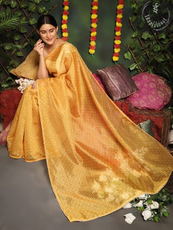 Latest Traditional Wear Saree Collection. Exclusive with Embroidery Work gives a Fashionable Look, High sensed style and luxury makes you ready for envious glazes and very rich & Royal in the Party, Function, Event etc.