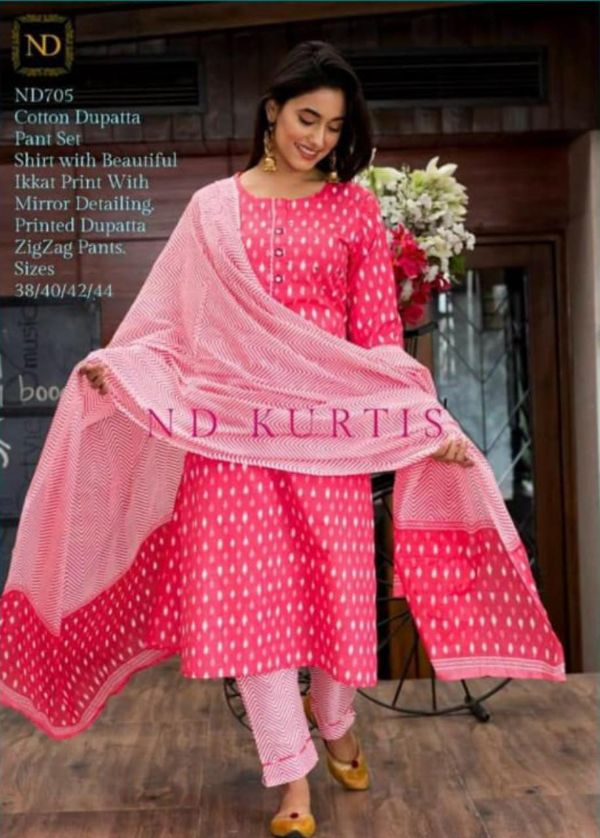 Balaji Emporium Beautiful Cotton Kurti With Pant & Dupatta Collection