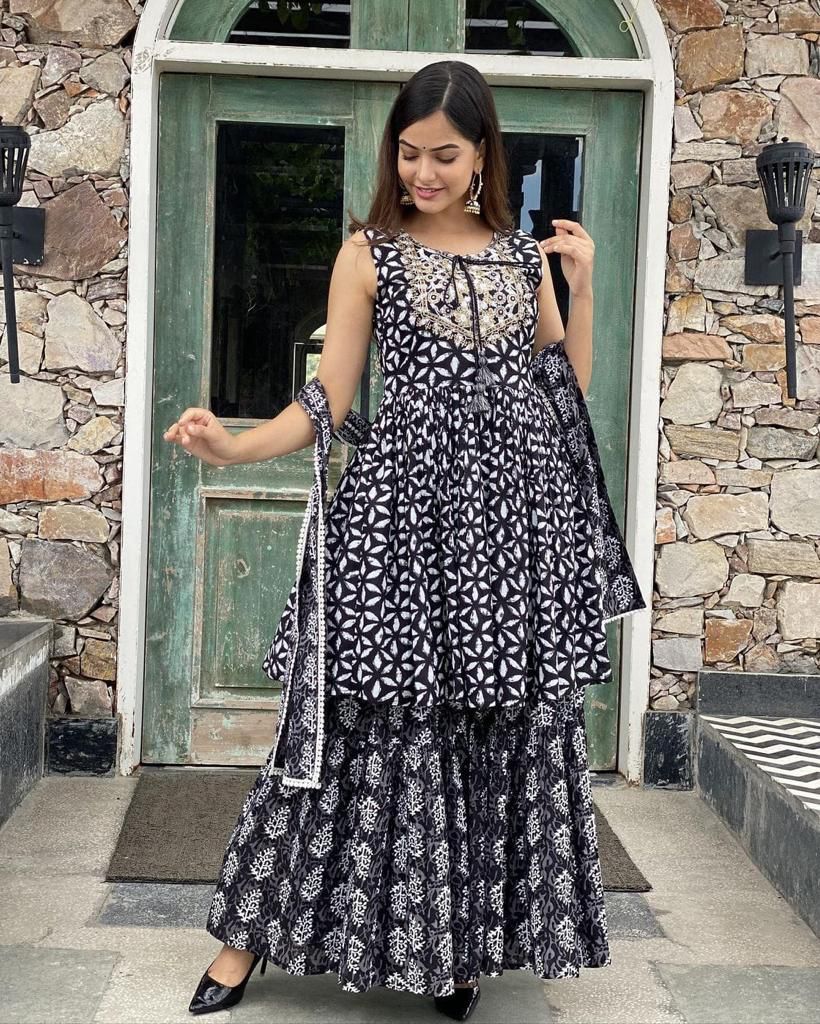 Balaji Emporium Beautiful Cotton Peplon Kurti With Sharara And Dupatta Collection
