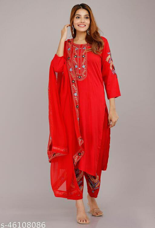Balaji Emporium Beautiful Heavy Rayon Kurti With Pant And Dupatta