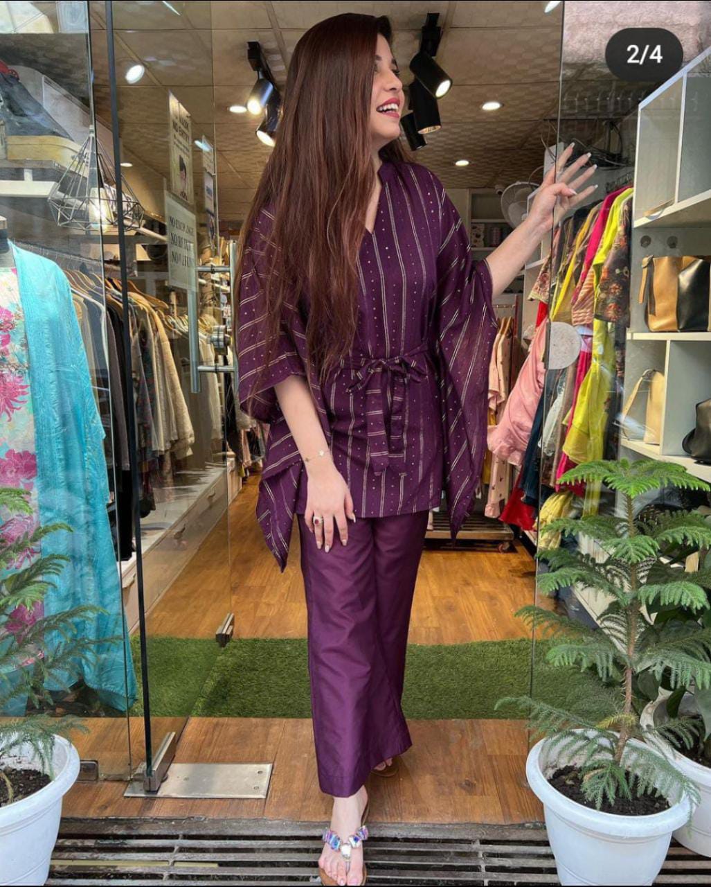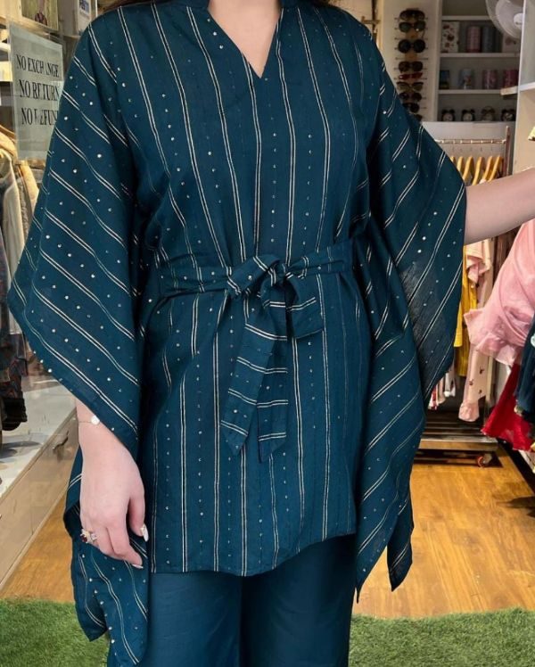 Fabric: Rayon Beautiful Kaftan With Bell Bottom Style Pant With Belt Style