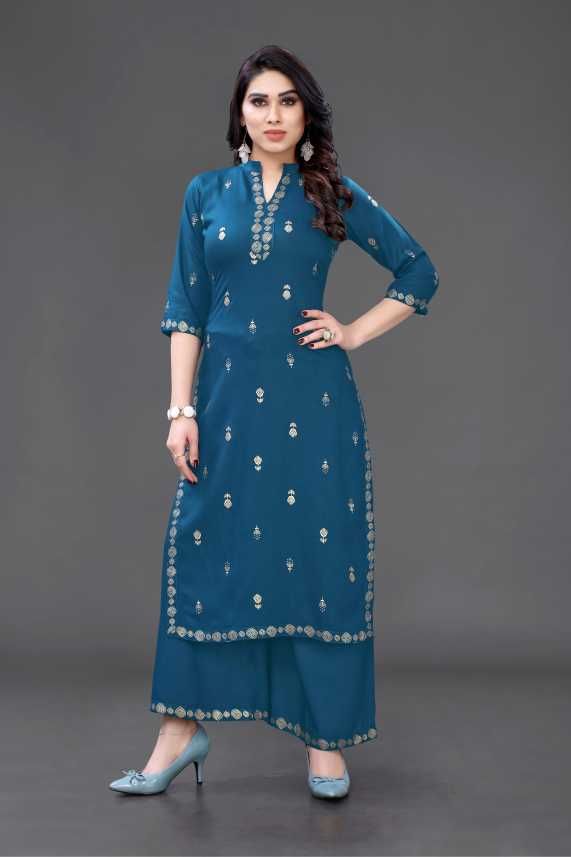 Latest Designer kurti plazzo Collection. Exclusive with Foil & Thread Embroidery Work gives a Fashionable Look, High sensed style and luxury makes you ready for envious glazes and very rich & Royal in the Party, Function, Event etc.