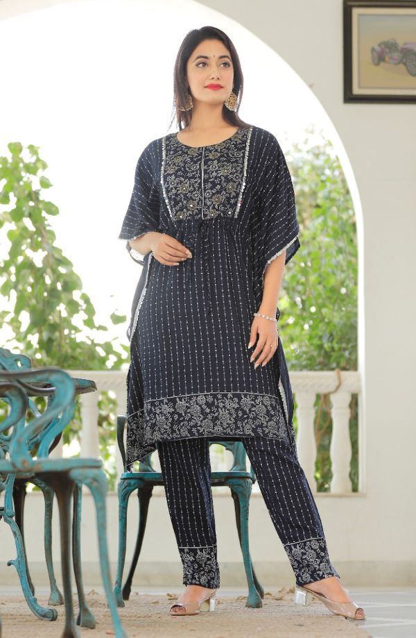 Balaji Emporium Beautiful Rayon Sequence Hand Work With Gold Printed Kaftan And Pent Collection