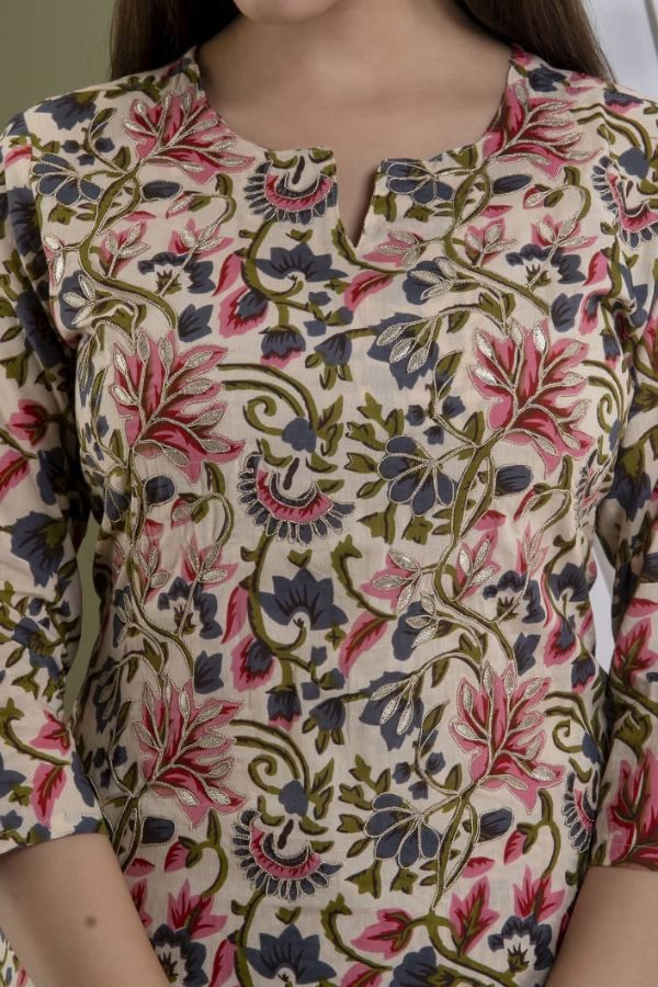 Fabric: "Cotton 60-60 Beautiful Printed Kurti with Neck Beautiful Gotta Work