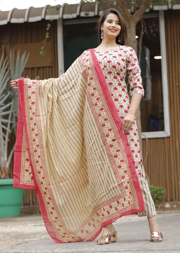 Balaji Emporium Cotton Kurti Pant With Beautiful Heavy Dupatta Collection