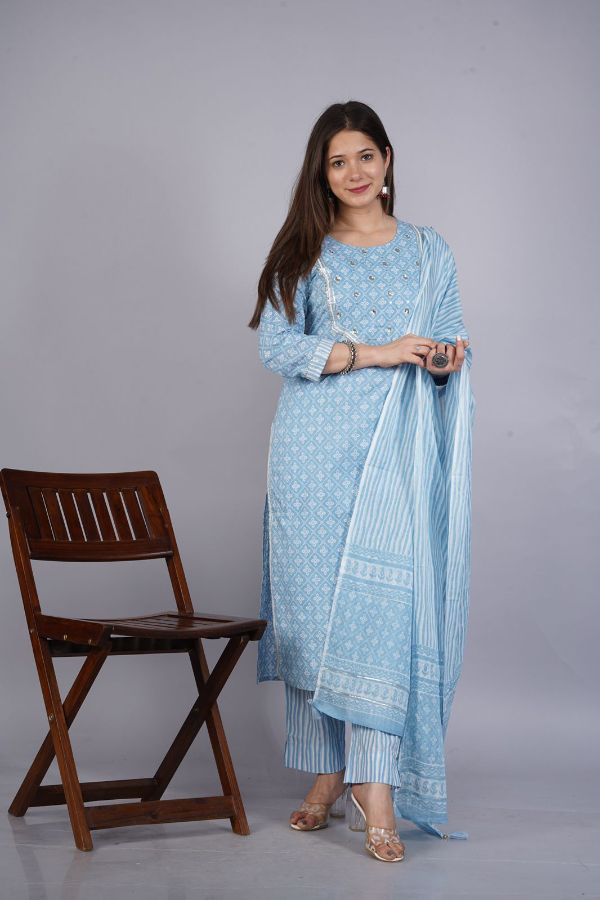 Balaji Emporium Cotton With Embroidery Work Kurti With Pent And Dupatta Collection