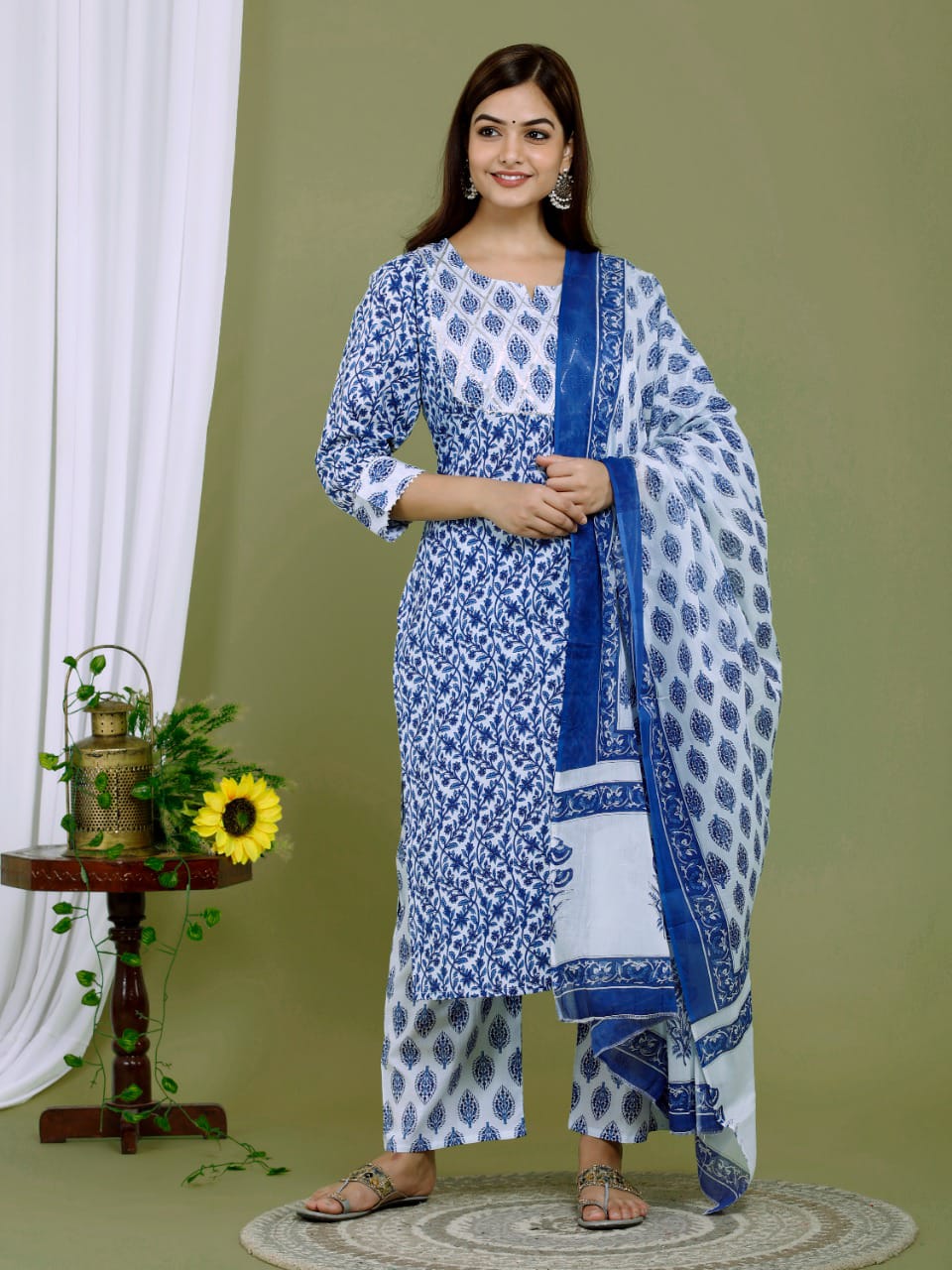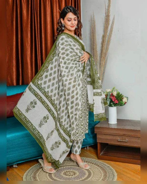 Balaji Emporium Cotton With Gota Lace Work Kurti Pent And Dupatta Collection