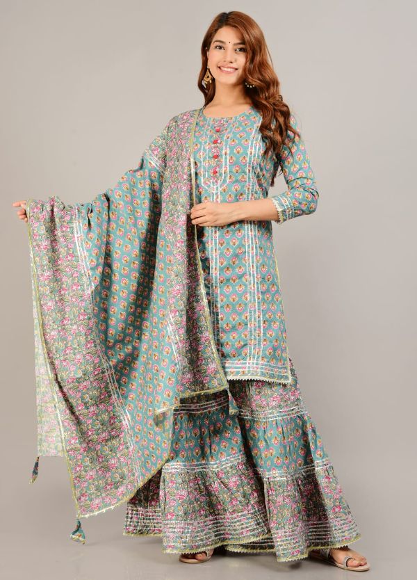 Balaji Emporium Cotton With Gota Work Kurti And Sharara With Beautiful Dupatta Collection