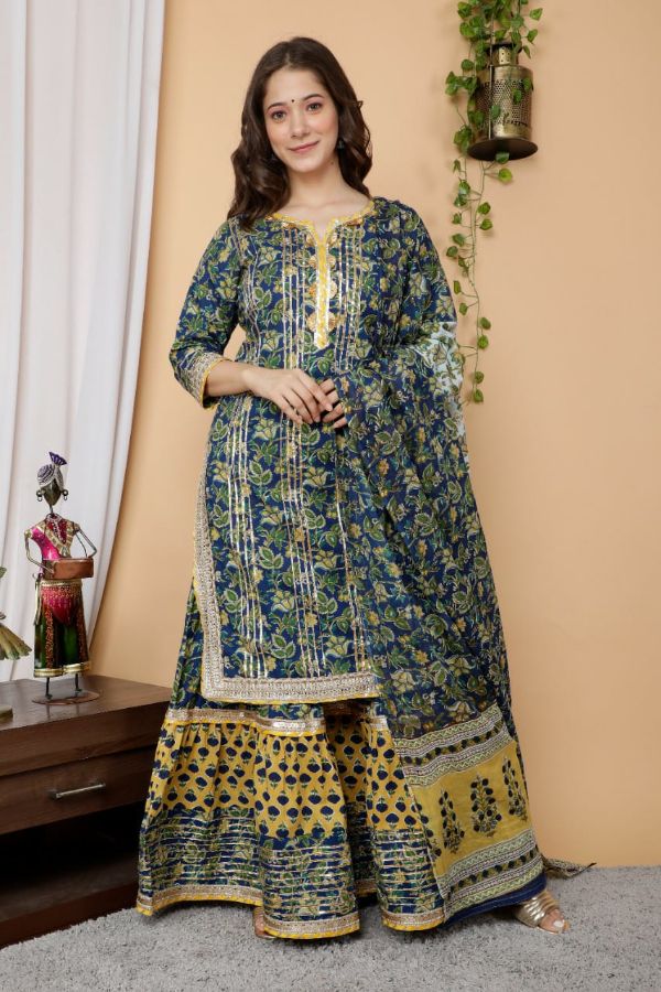 Balaji Emporium Cotton With Gota Work Kurti Sharara And Dupatta Collection