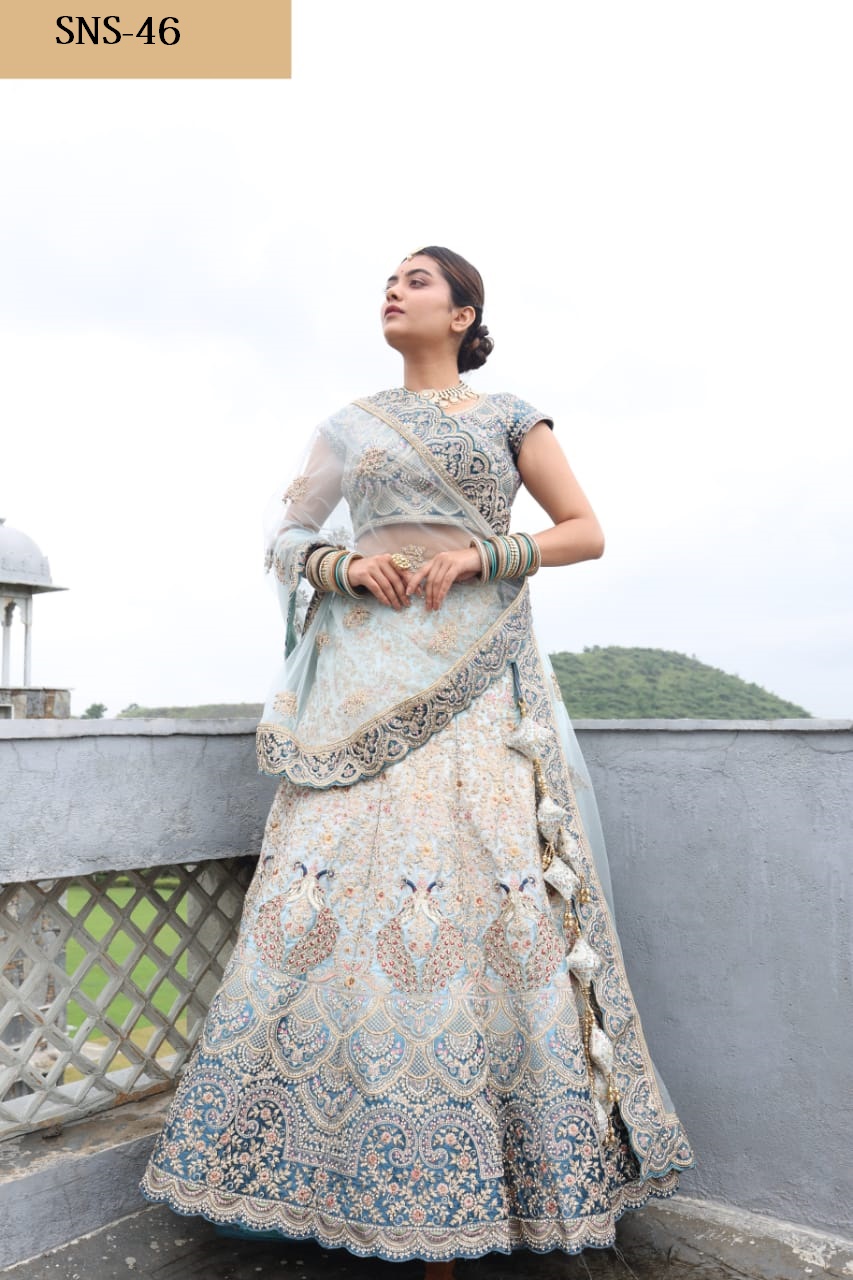 Latest Designer Heavy Wedding Lehenga Choli Collection. Exclusive with Embroidery Work gives a Fashionable Look, High sensed style and luxury makes you ready for envious glazes and very rich & Royal in the Party, Function, Event etc.