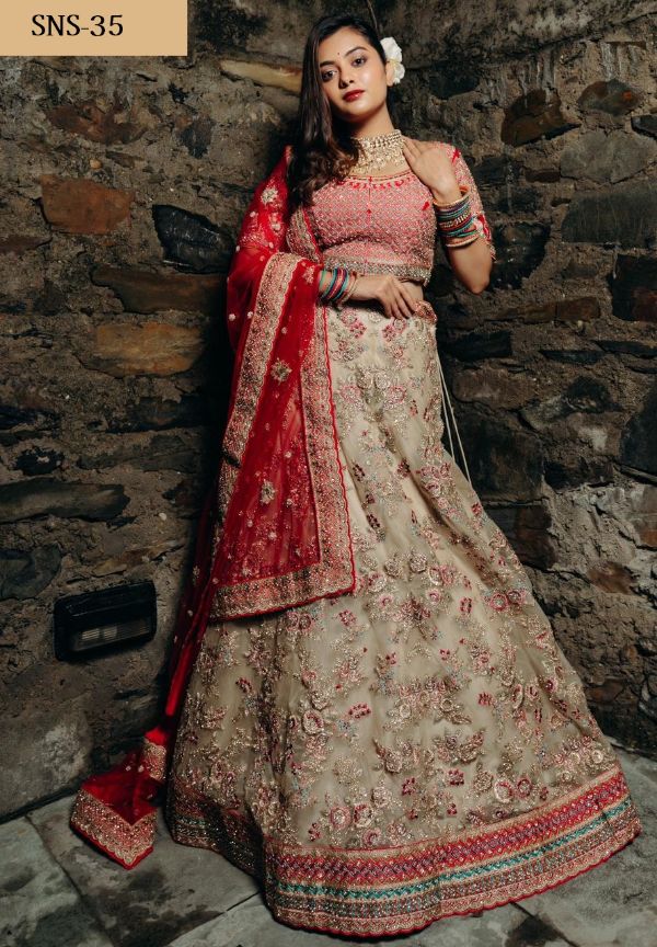 Latest Designer Heavy Wedding Lehenga Choli Collection. Exclusive with Embroidery Work gives a Fashionable Look, High sensed style and luxury makes you ready for envious glazes and very rich & Royal in the Party, Function, Event etc.