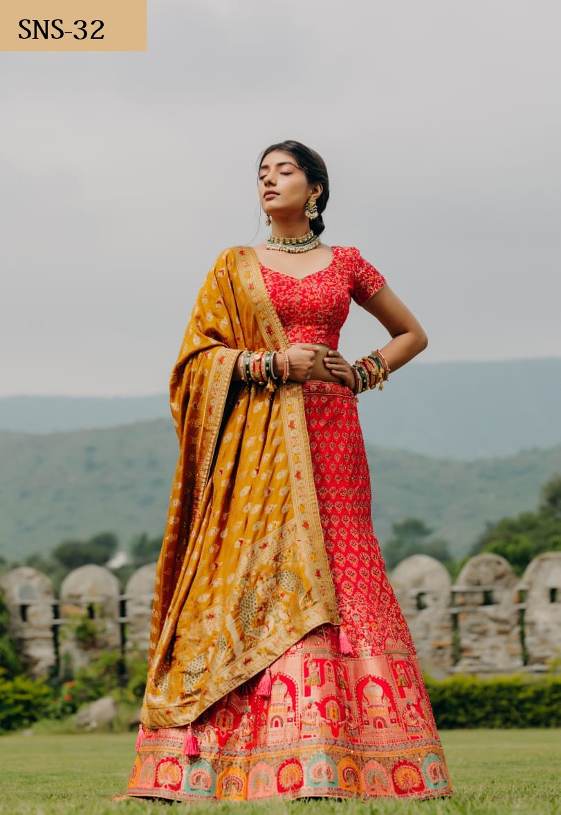 Latest Designer Heavy Wedding Lehenga Choli Collection. Exclusive with Embroidery Work gives a Fashionable Look, High sensed style and luxury makes you ready for envious glazes and very rich & Royal in the Party, Function, Event etc.