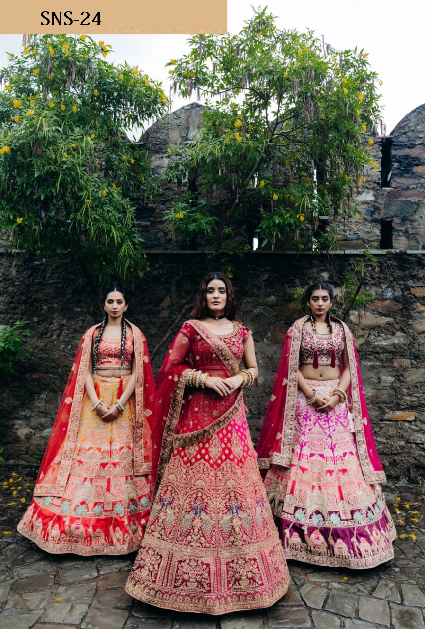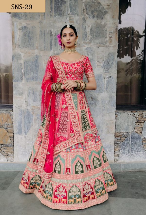 Latest Designer Heavy Wedding Lehenga Choli Collection. Exclusive with Embroidery Work gives a Fashionable Look, High sensed style and luxury makes you ready for envious glazes and very rich & Royal in the Party, Function, Event etc.