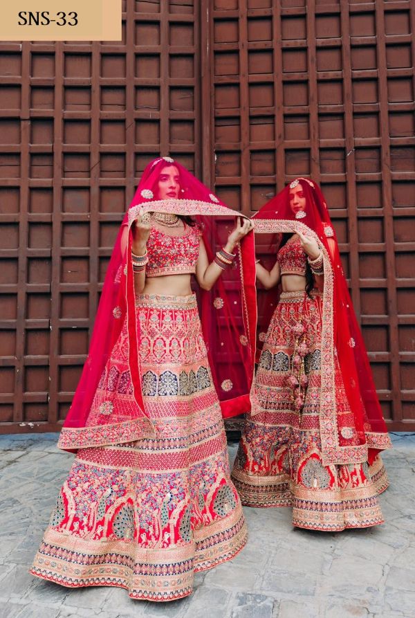 Latest Designer Heavy Wedding Lehenga Choli Collection. Exclusive with Embroidery Work gives a Fashionable Look, High sensed style and luxury makes you ready for envious glazes and very rich & Royal in the Party, Function, Event etc.