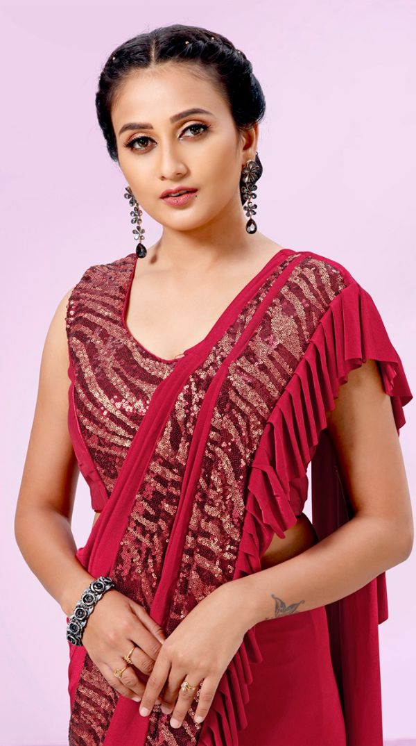 Latest Designer saree Collection. Exclusive with Foil & Thread Embroidery Work gives a Fashionable Look, High sensed style and luxury makes you ready for envious glazes and very rich & Royal in the Party, Function, Event etc.