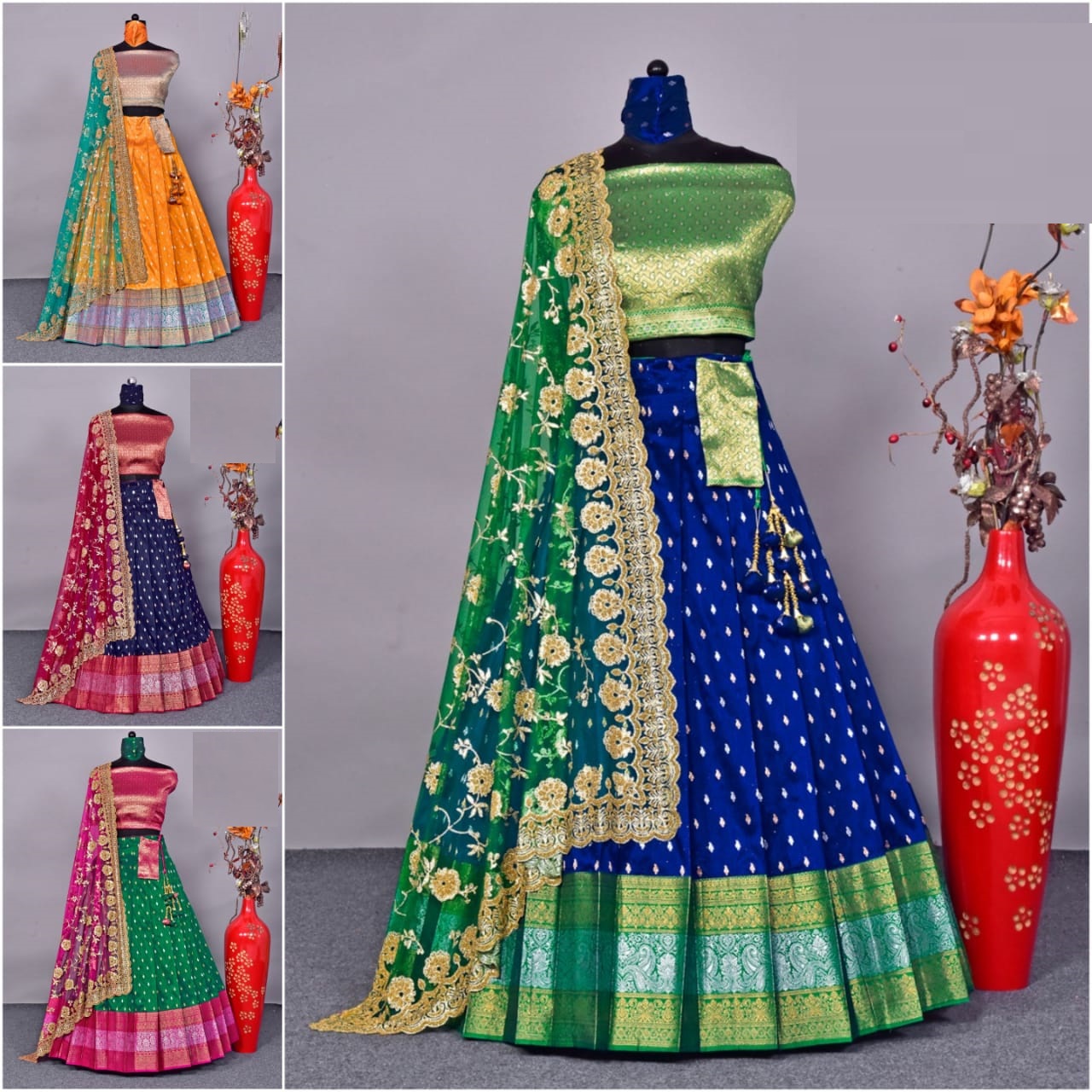 Latest Designer Lehenga Choli Collection. Exclusive with Foil & Thread Embroidery Work gives a Fashionable Look, High sensed style and luxury makes you ready for envious glazes and very rich & Royal in the Party, Function, Event etc.