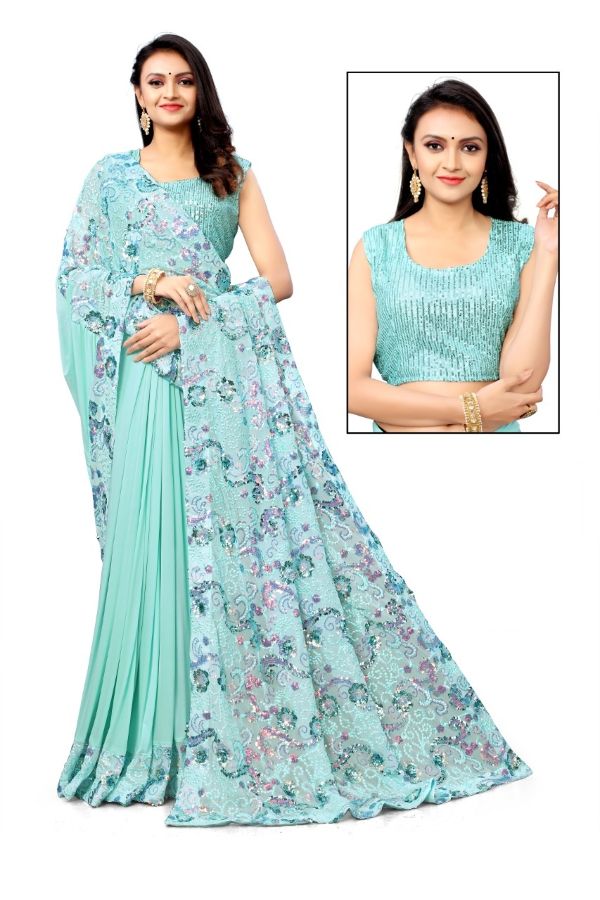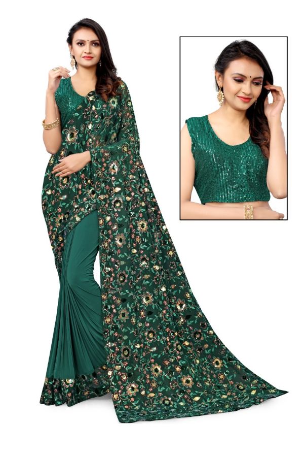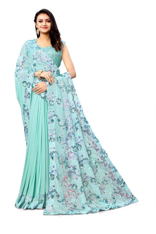 Latest Designer saree Collection. Exclusive with Foil & Thread Embroidery Work gives a Fashionable Look, High sensed style and luxury makes you ready for envious glazes and very rich & Royal in the Party, Function, Event etc.